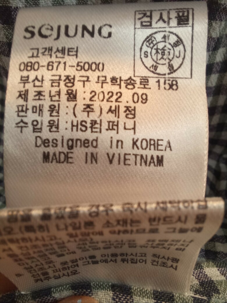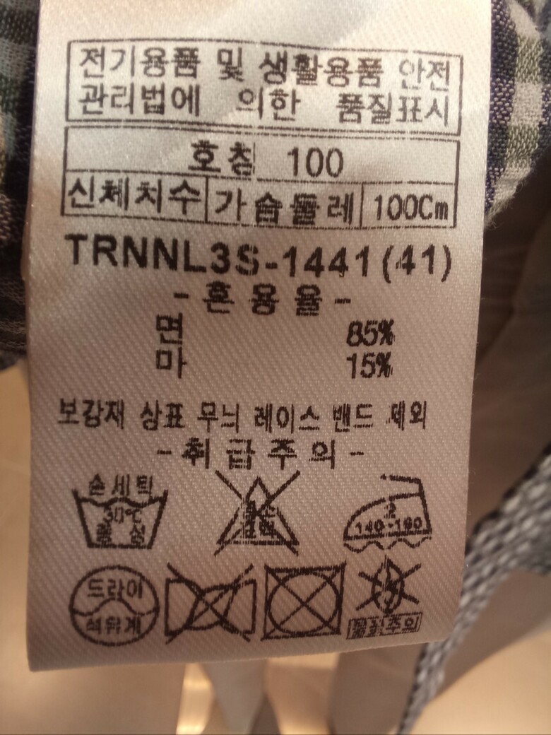 | 1. 제품 소재 (섬유의 조성 또는 혼용률을 백분율로 표시, 기능성인 경우 성적서 또는 허가서) | 면 85%, 마 15% |