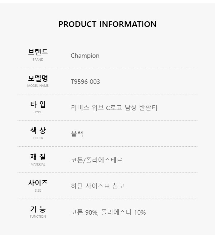 챔피온 T9596 003 리버스 위브 C로고 남성 반팔티
