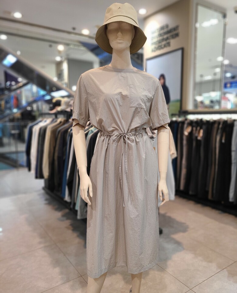 - 경량 우븐 소재를 사용한 롱기장 원피스