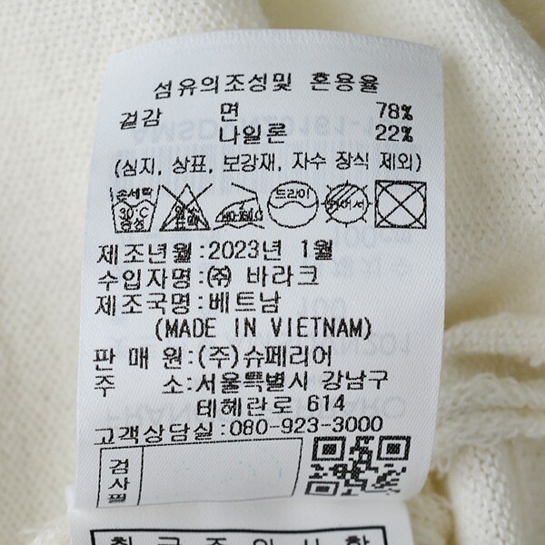 | 1. 제품 소재 (섬유의 조성 또는 혼용률을 백분율로 표시, 기능성인 경우 성적서 또는 허가서) | 면78%나일론22% |