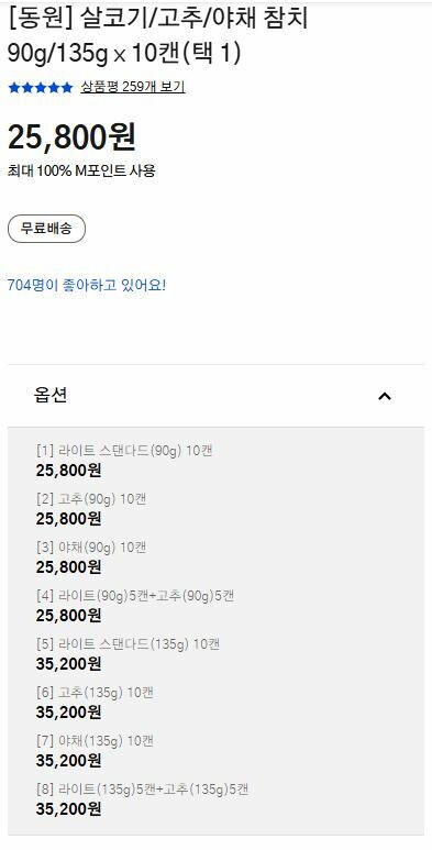 1. 제품명 동원 야채참치 135g * 10캔