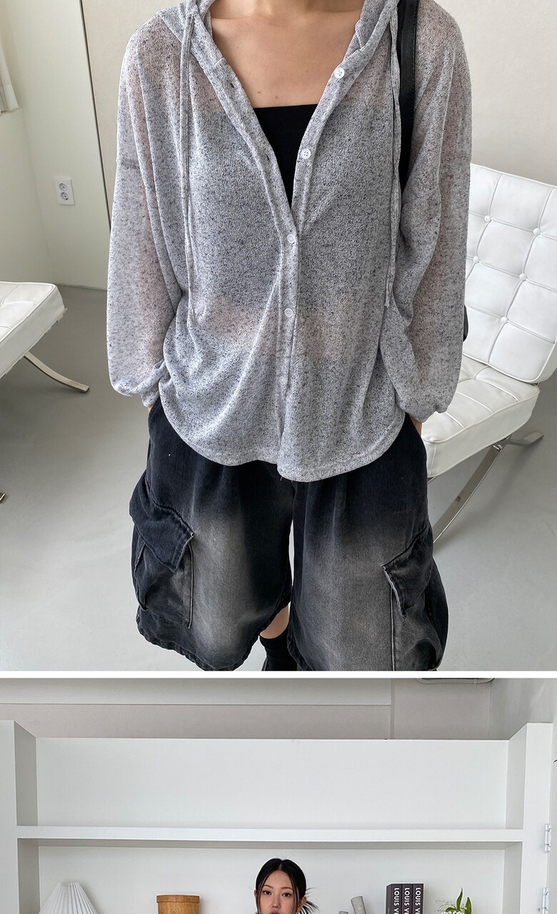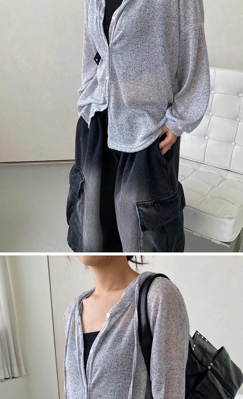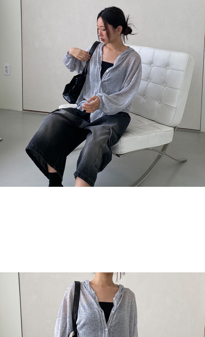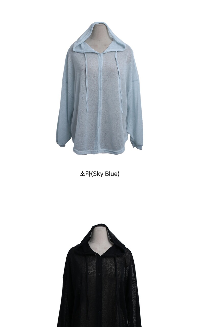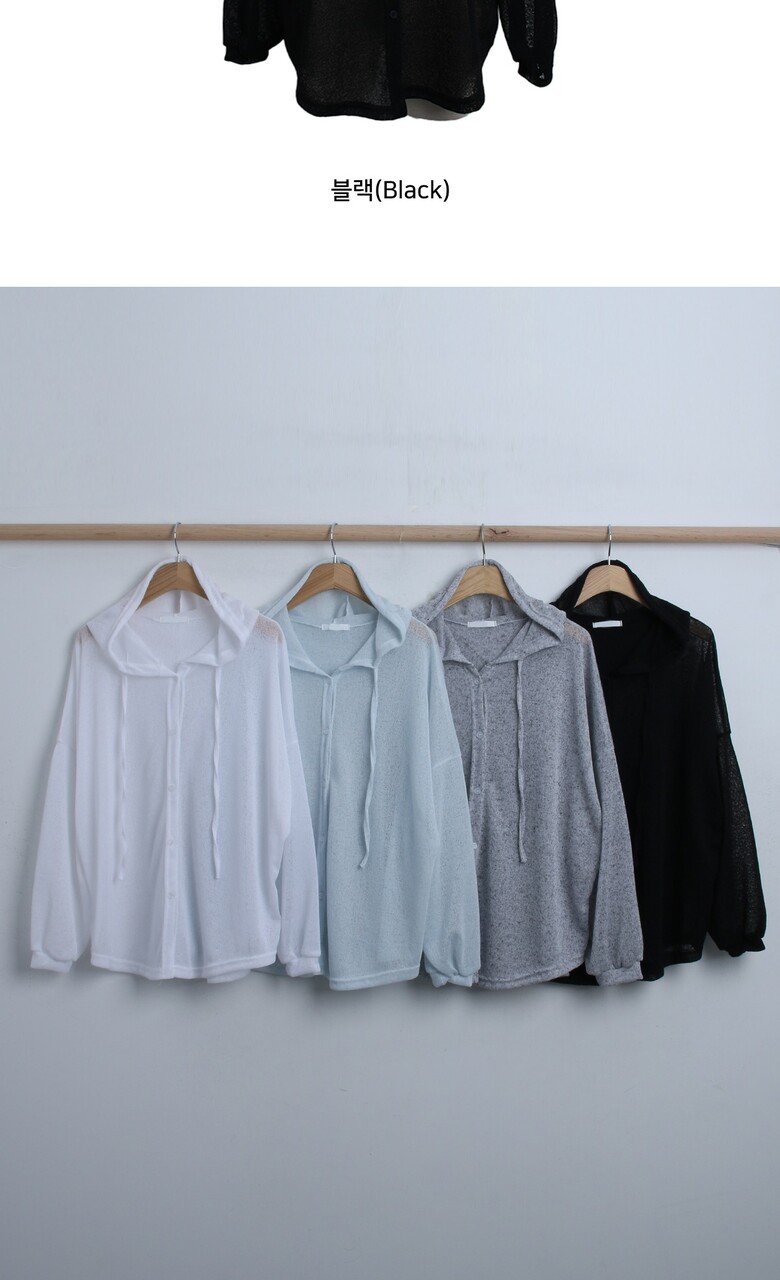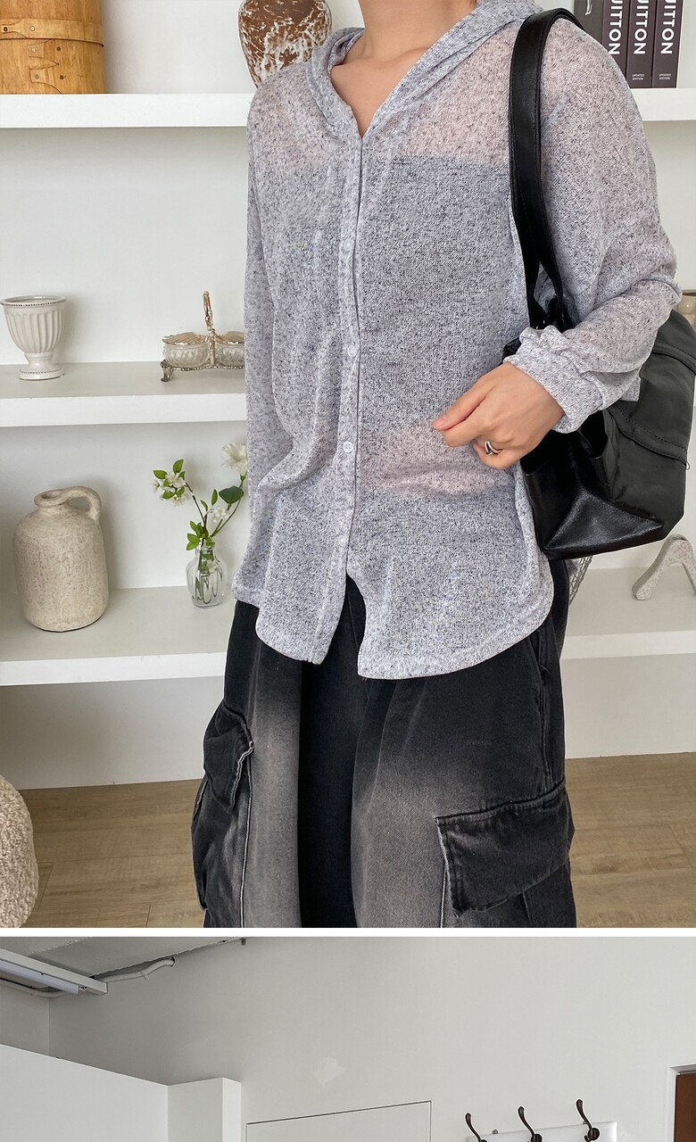 네쥬 여성 여름 오버핏 시스루 얇은 긴팔 후드 니트 가디건