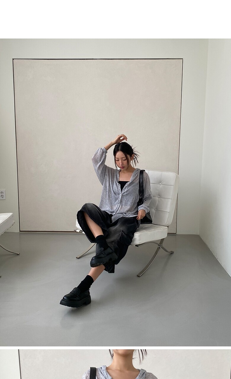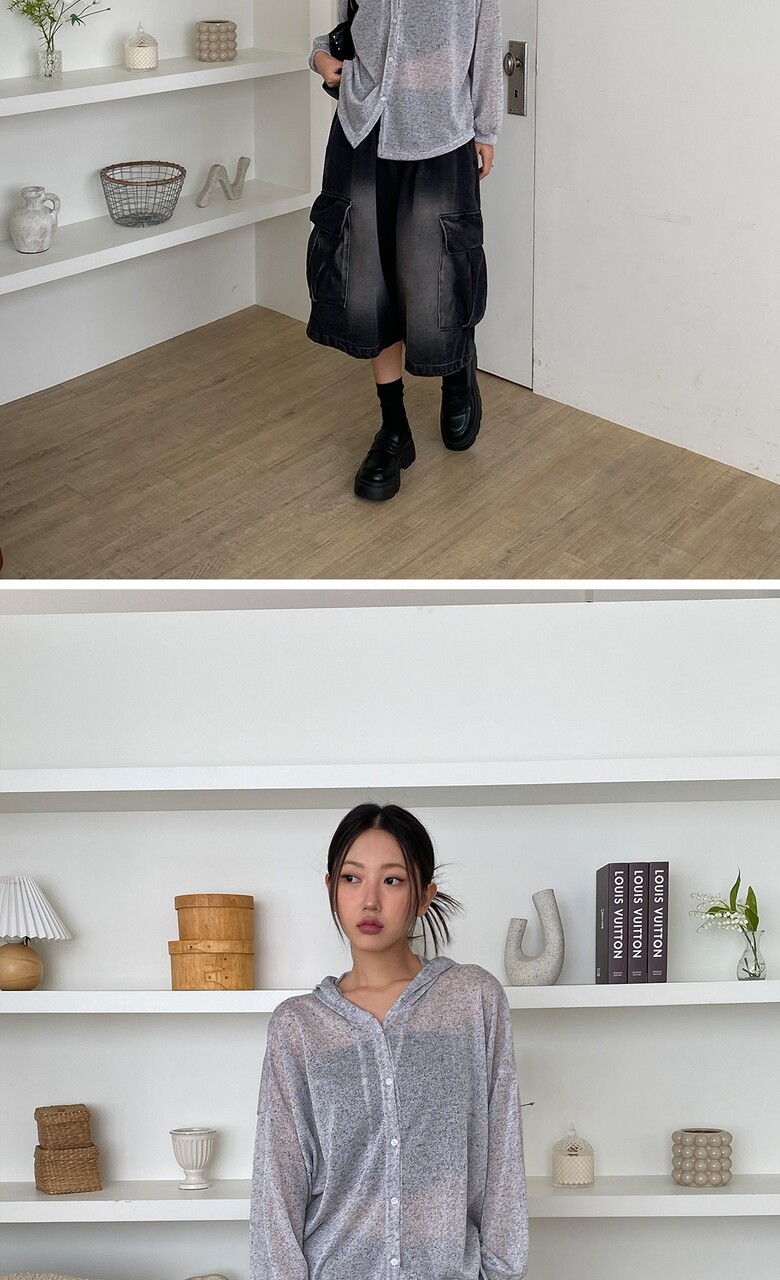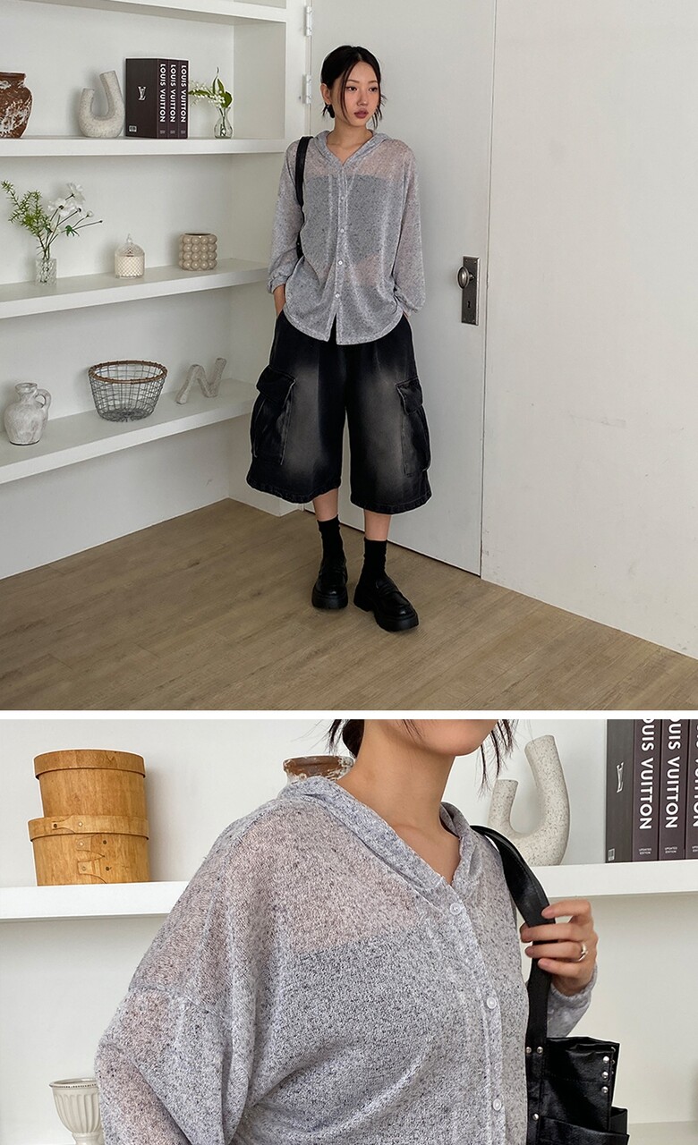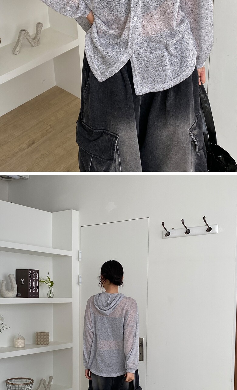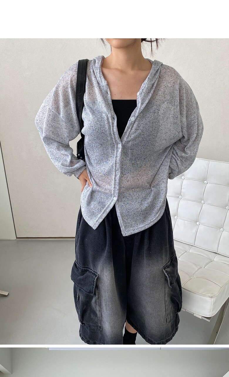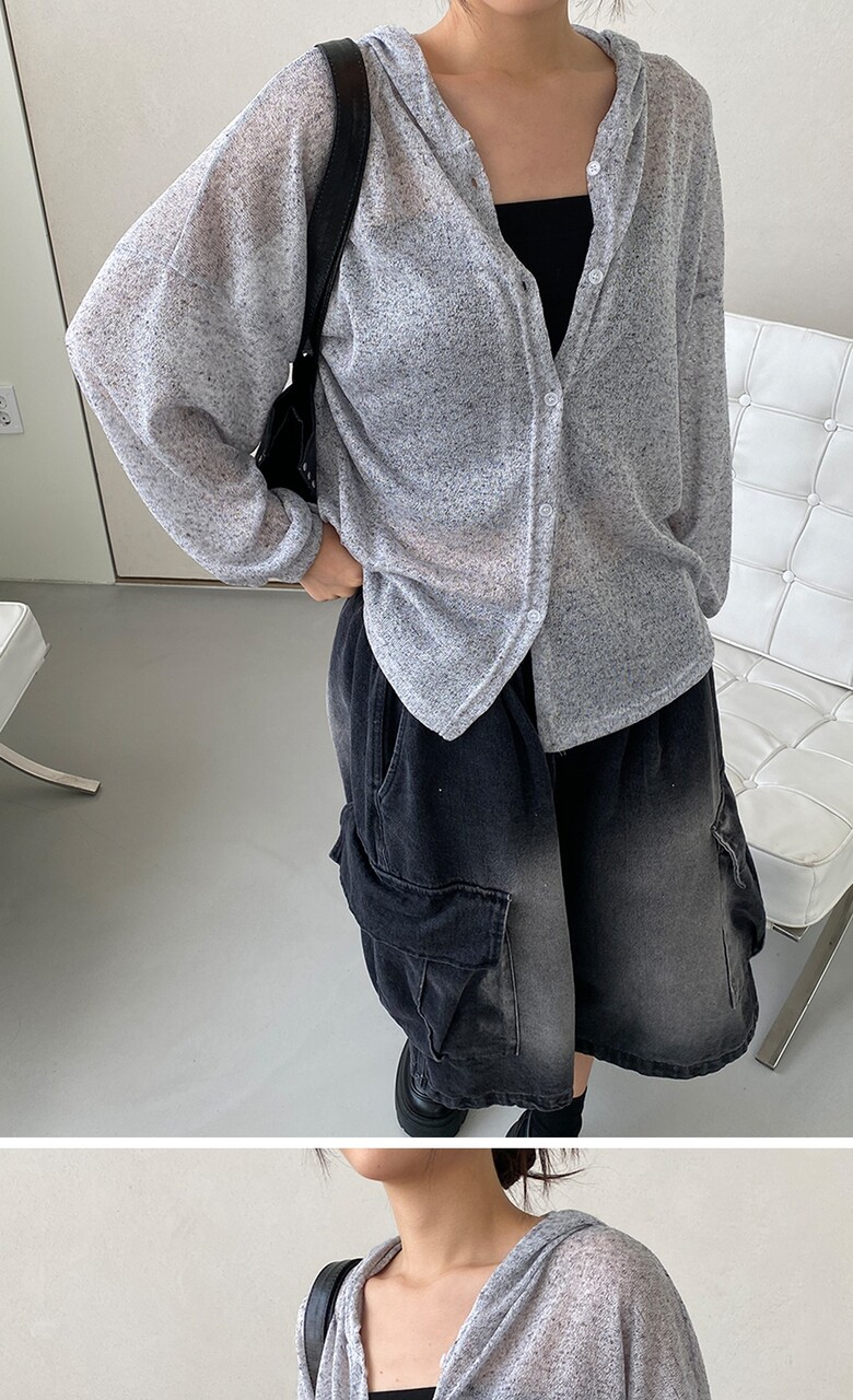 네쥬 여성 여름 오버핏 시스루 얇은 긴팔 후드 니트 가디건