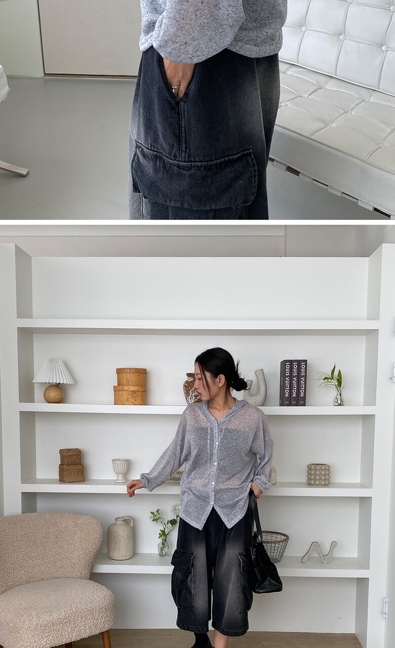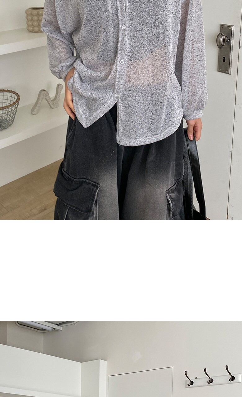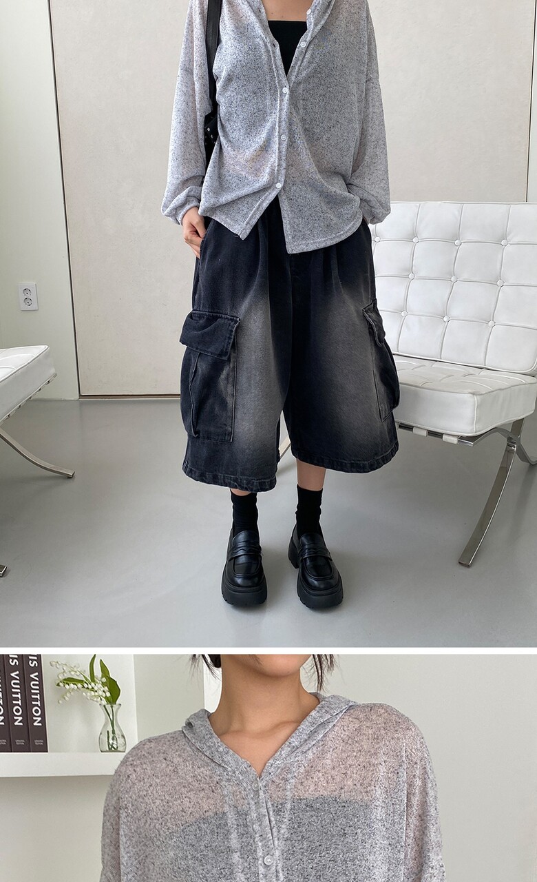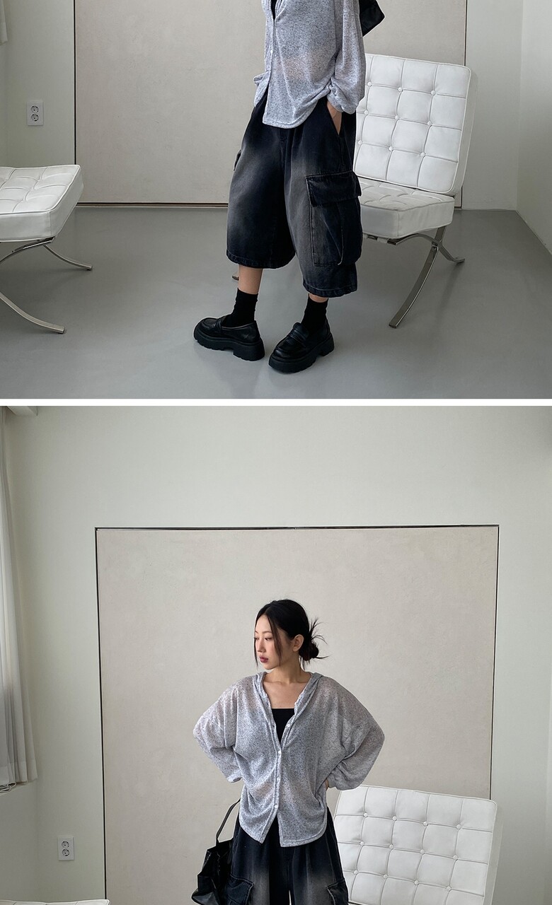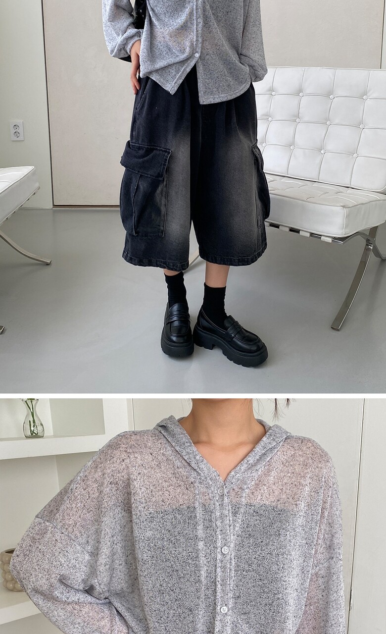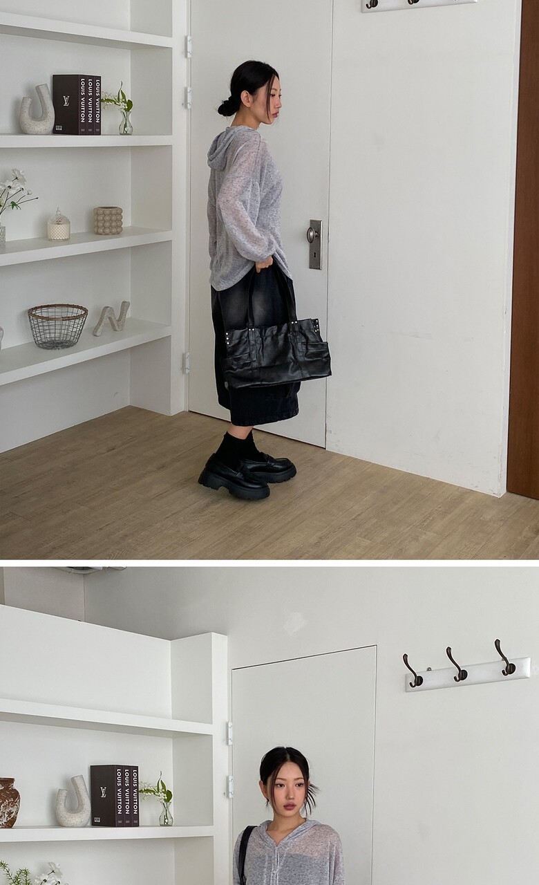네쥬 여성 여름 오버핏 시스루 얇은 긴팔 후드 니트 가디건