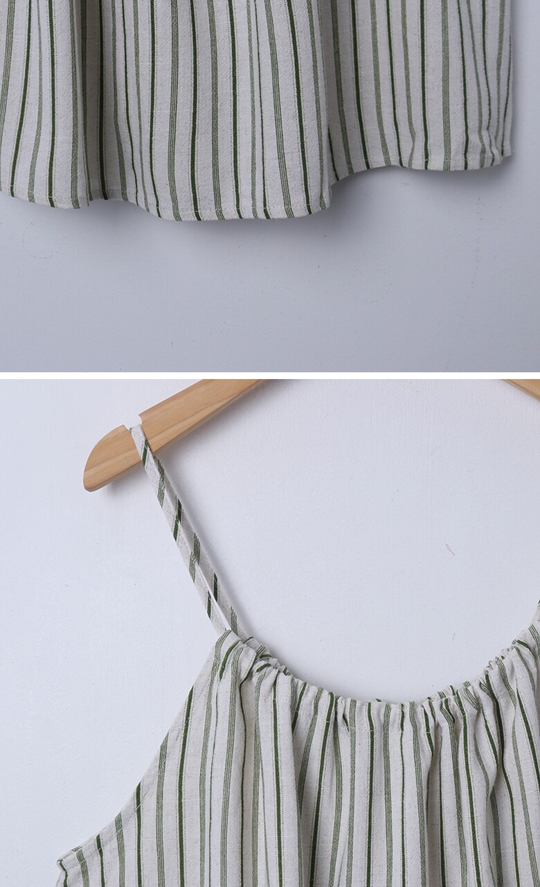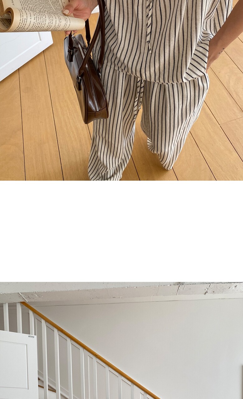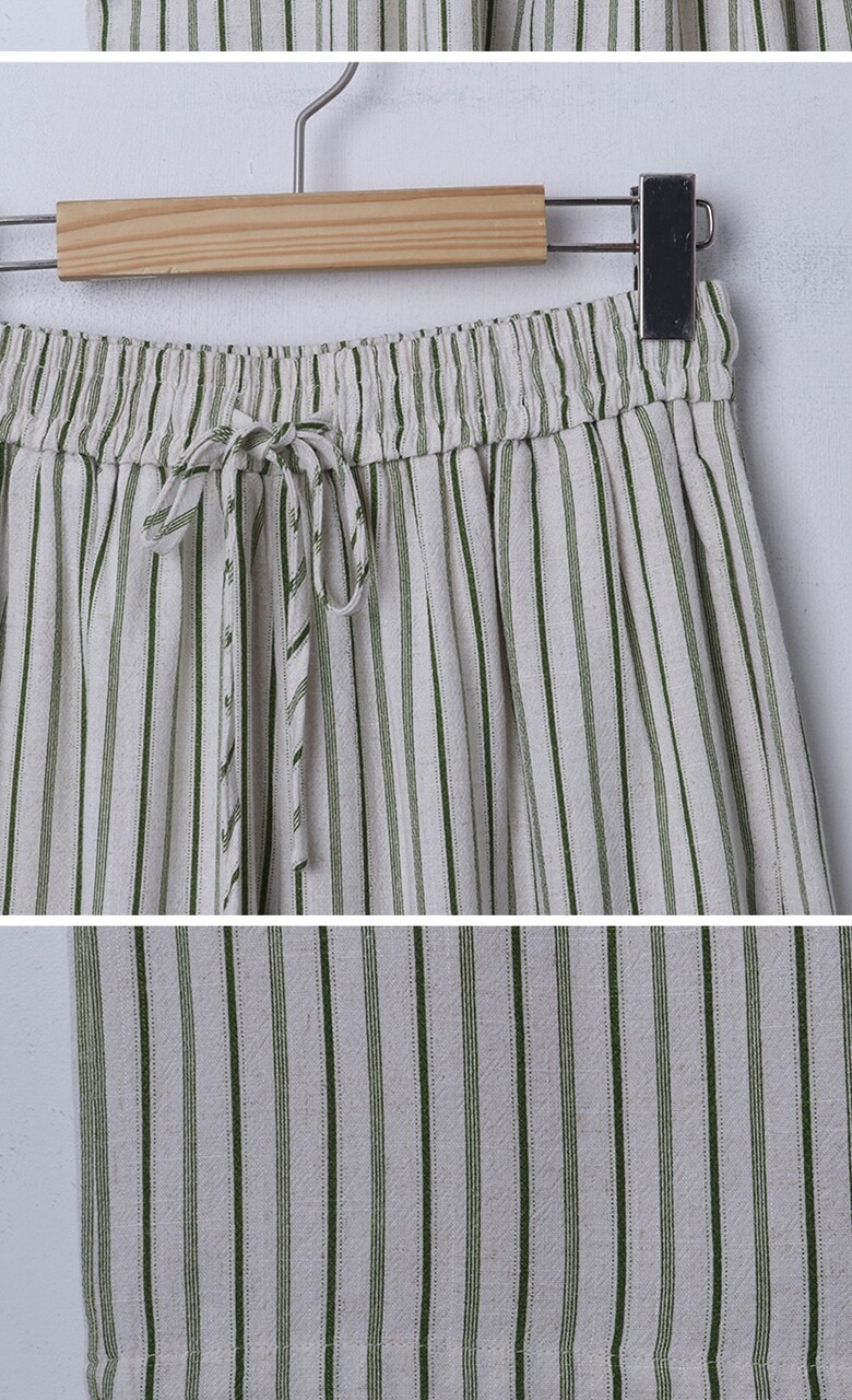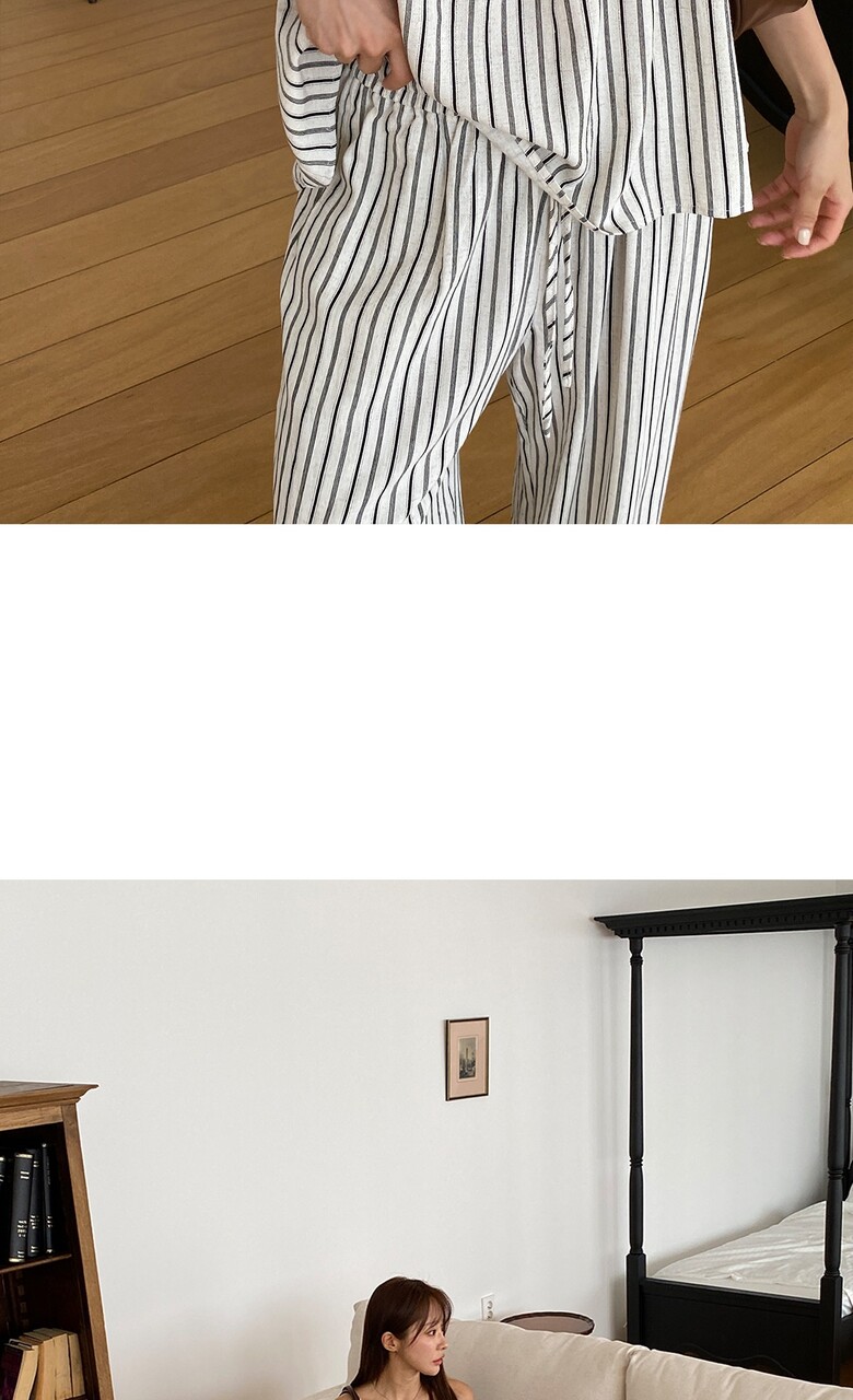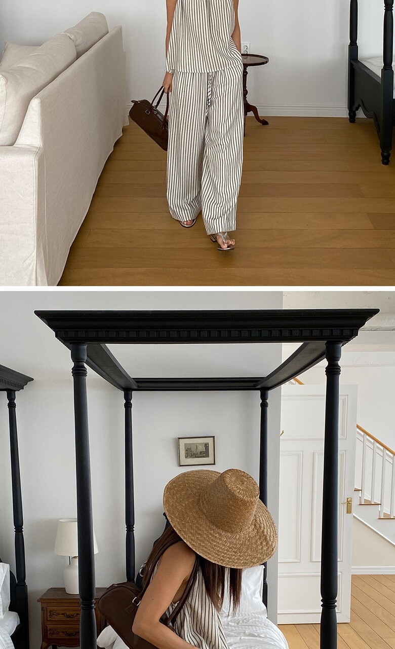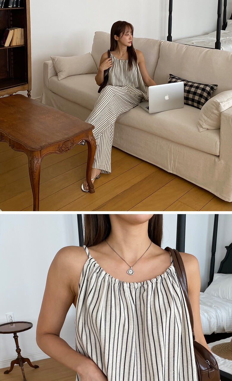 네쥬 여성 여름 린넨 스트라이프 나시 티셔츠 밴딩바지 세트