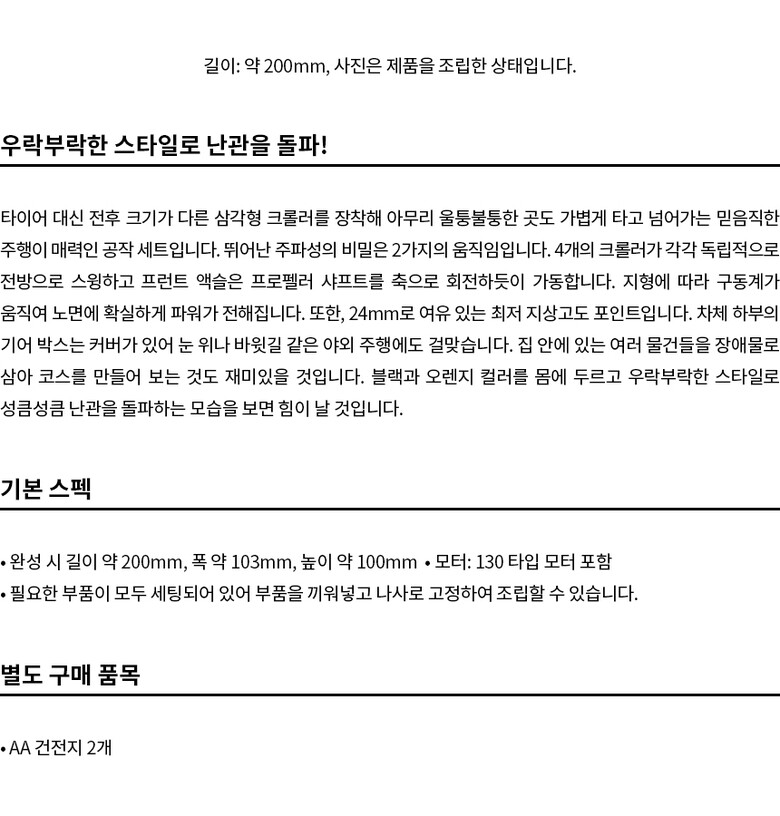1. 품명 및 모델명 | [70247]사륜 크롤러 공작 세트 |