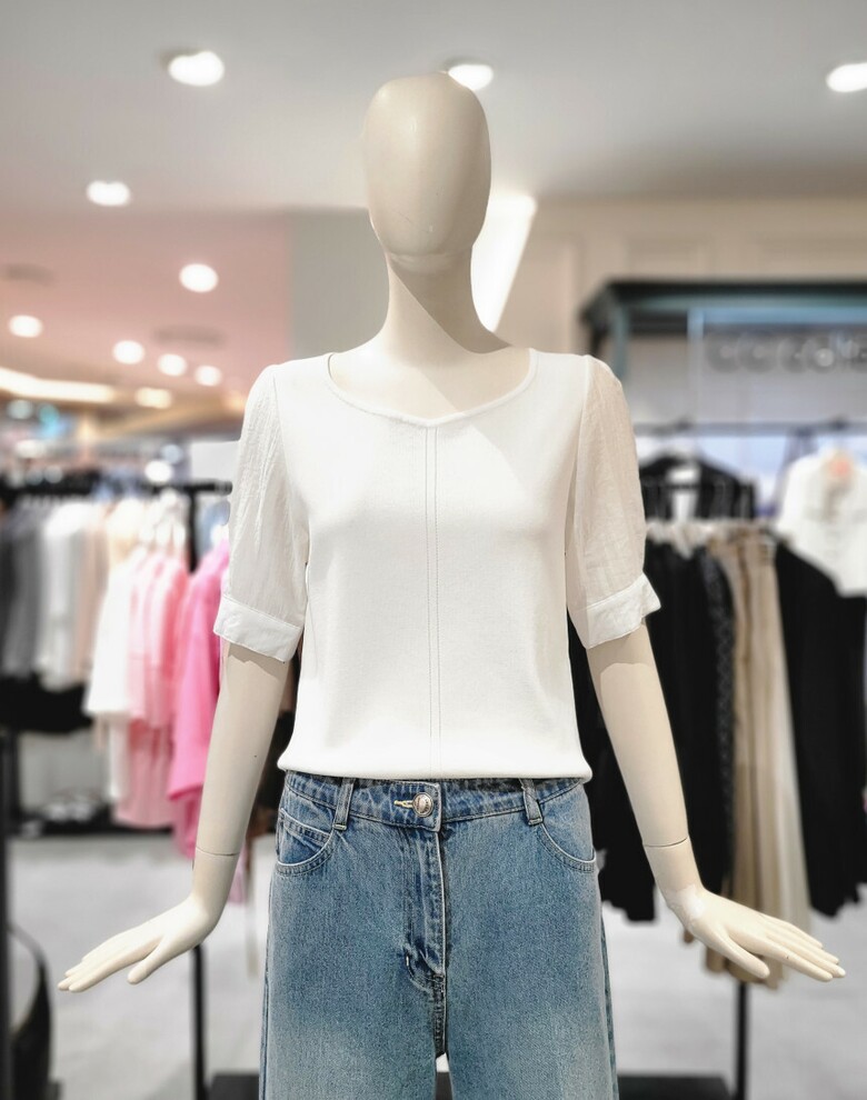 퍼프소매 포인트 반팔니트