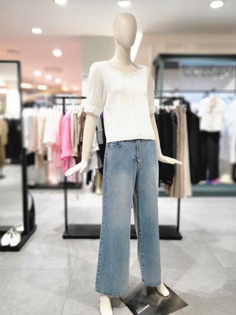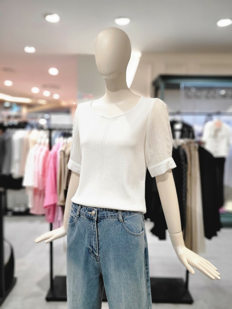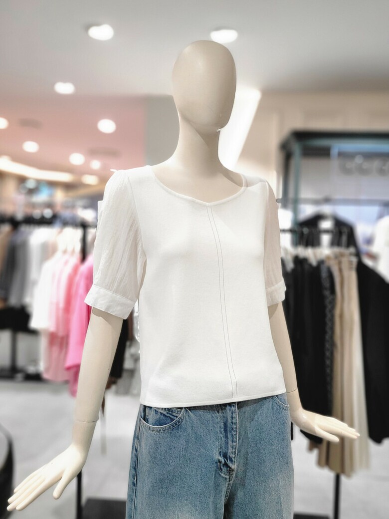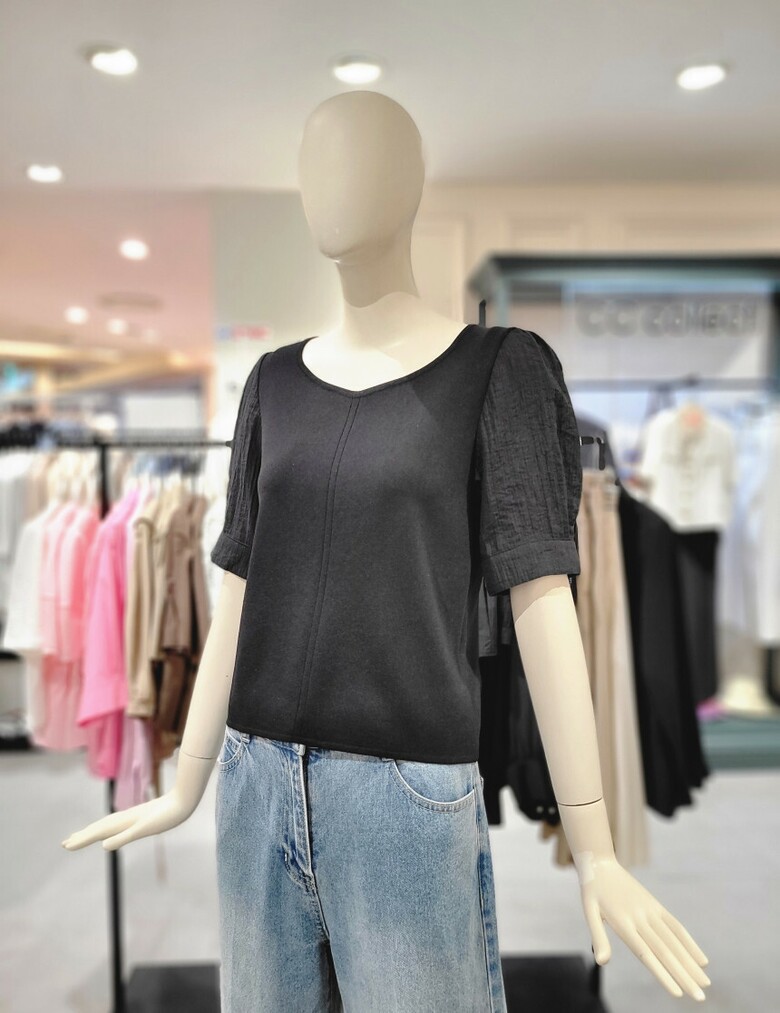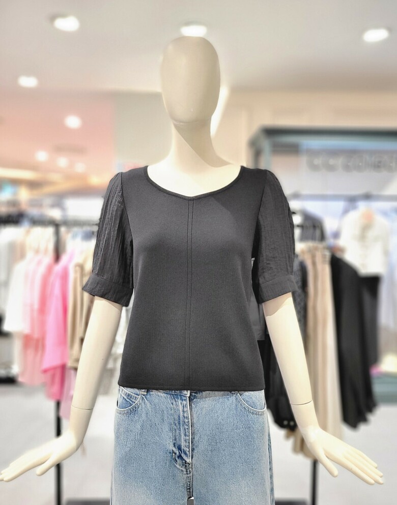 씨씨콜렉트 퍼프소매 포인트 반팔니트 E243KSK116