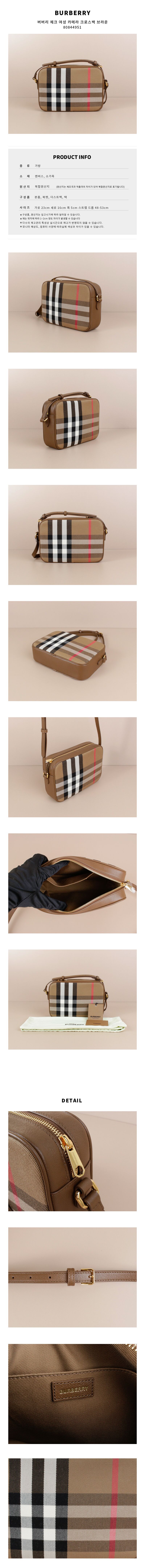 [명품] 버버리 체크 여성 카메라 크로스백 브라운 80844951