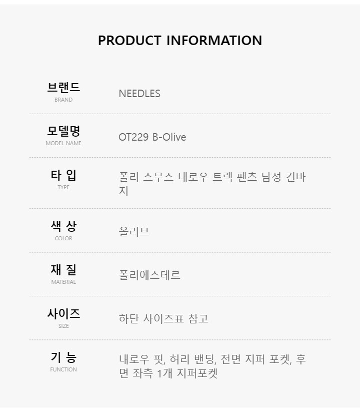 니들스 바지 OT229 B-Olive 내로우 트랙 남성긴바지 당일발송
