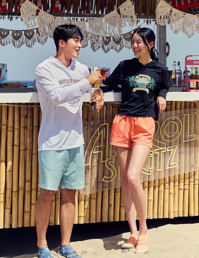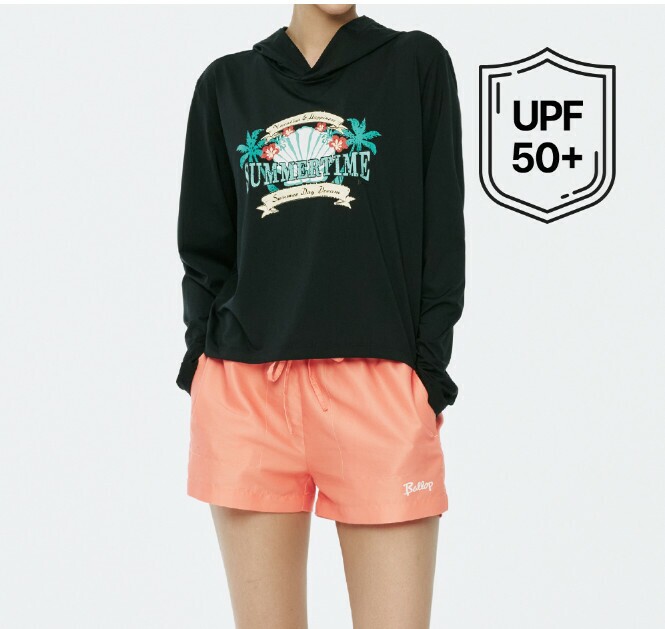 밸롭 여성 서피 후드 크롭 래쉬가드 화이트 BB2WHDW001
