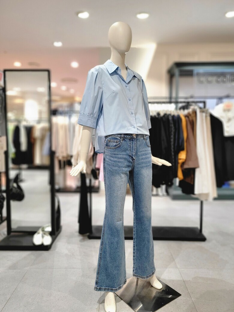 씨씨콜렉트 퍼프 슬리브 7부 소매 블라우스 E243MSC102