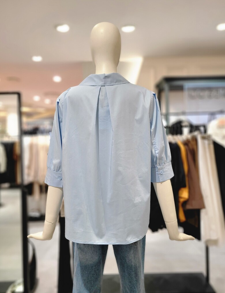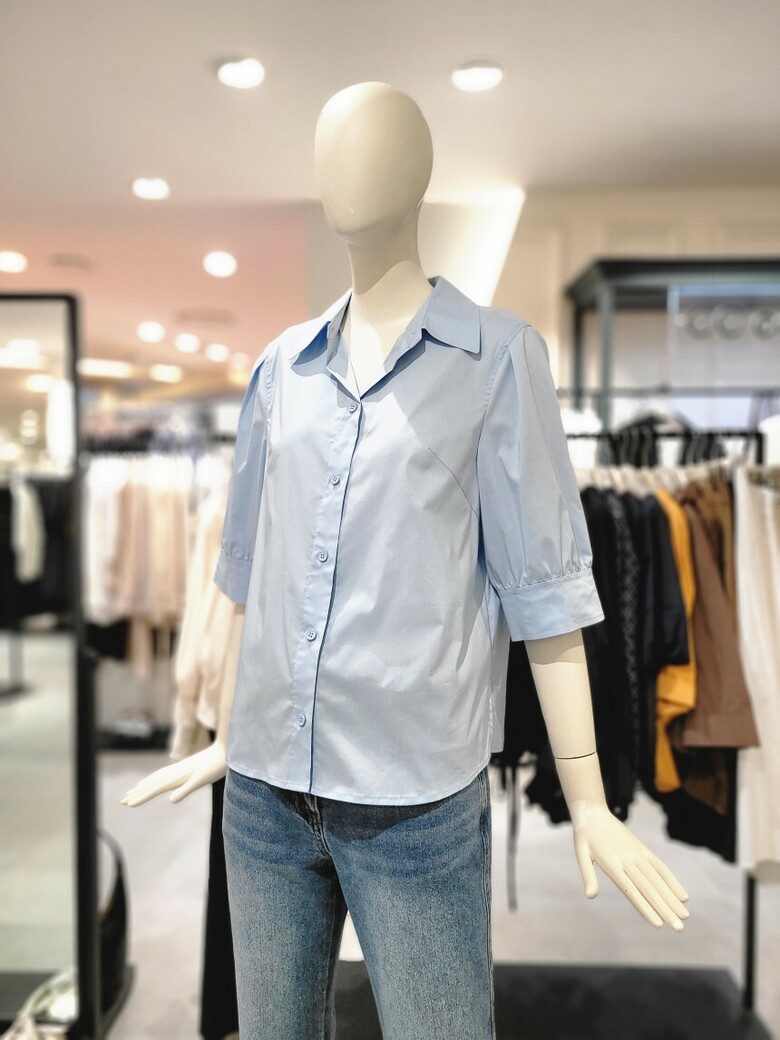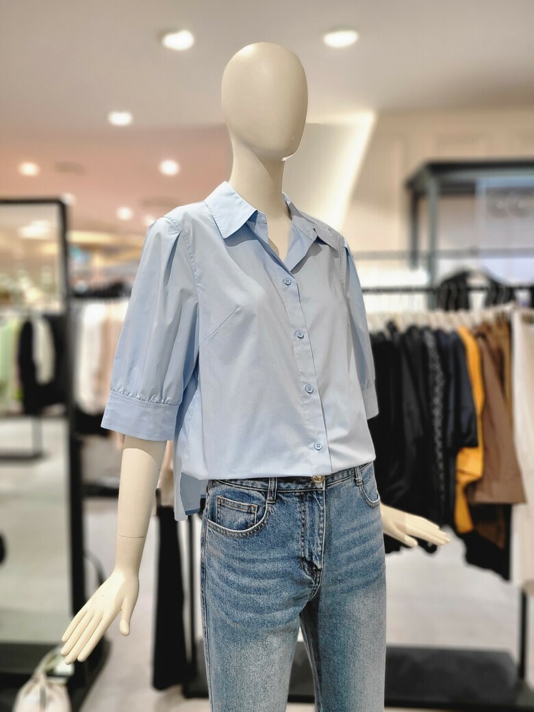 퍼프 슬리브 7부 소매 블라우스