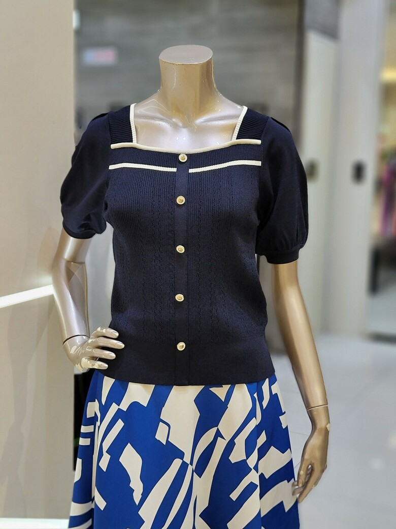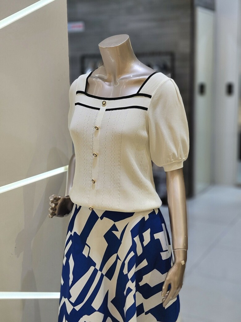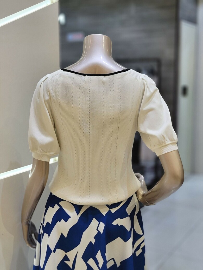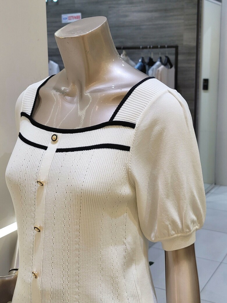 스퀘어 넥과 하프 슬리브 디자인으로 여성스러움을 더해주며
