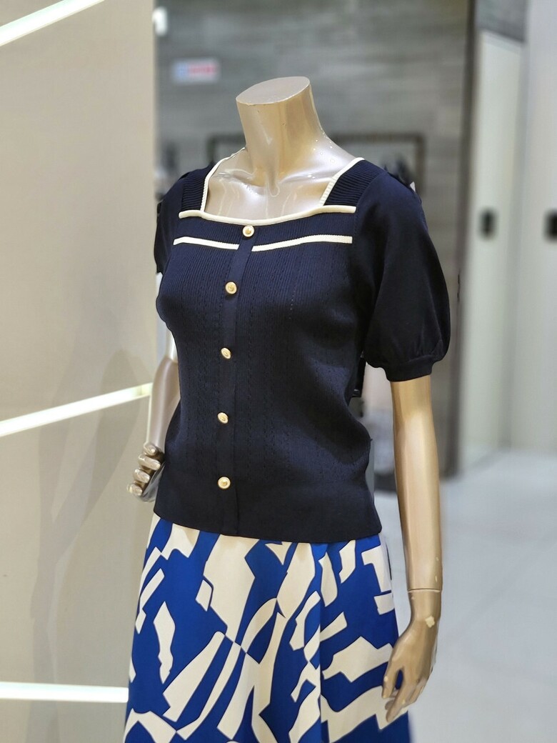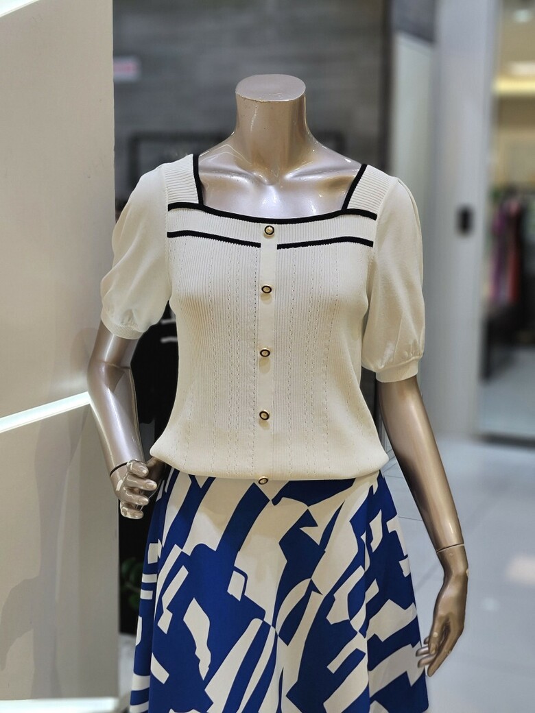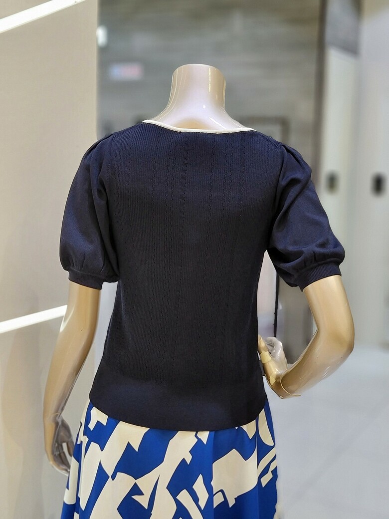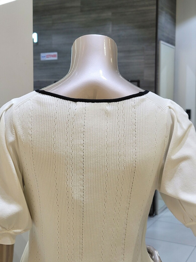 스퀘어 넥과 하프 슬리브 디자인으로 여성스러움을 더해주며