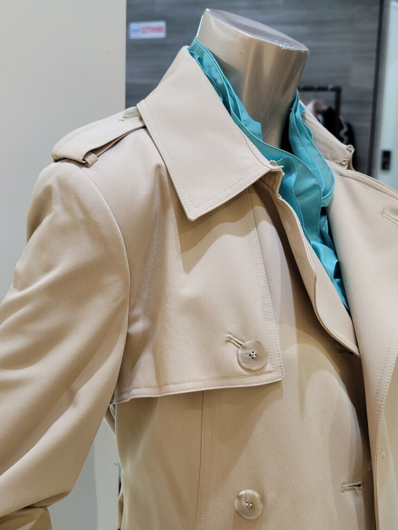 프런트 건 플랩과 백 플랩 슬리브 벨트 장식이 포인트가 되며