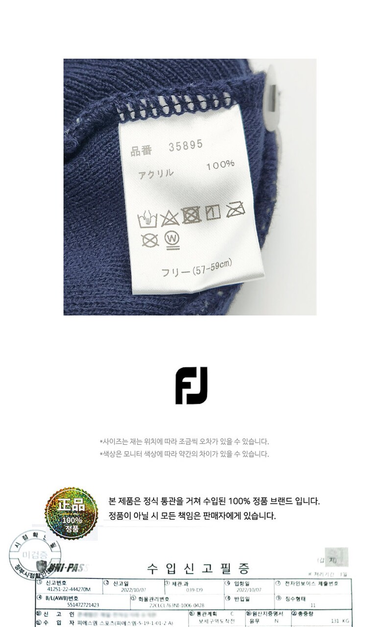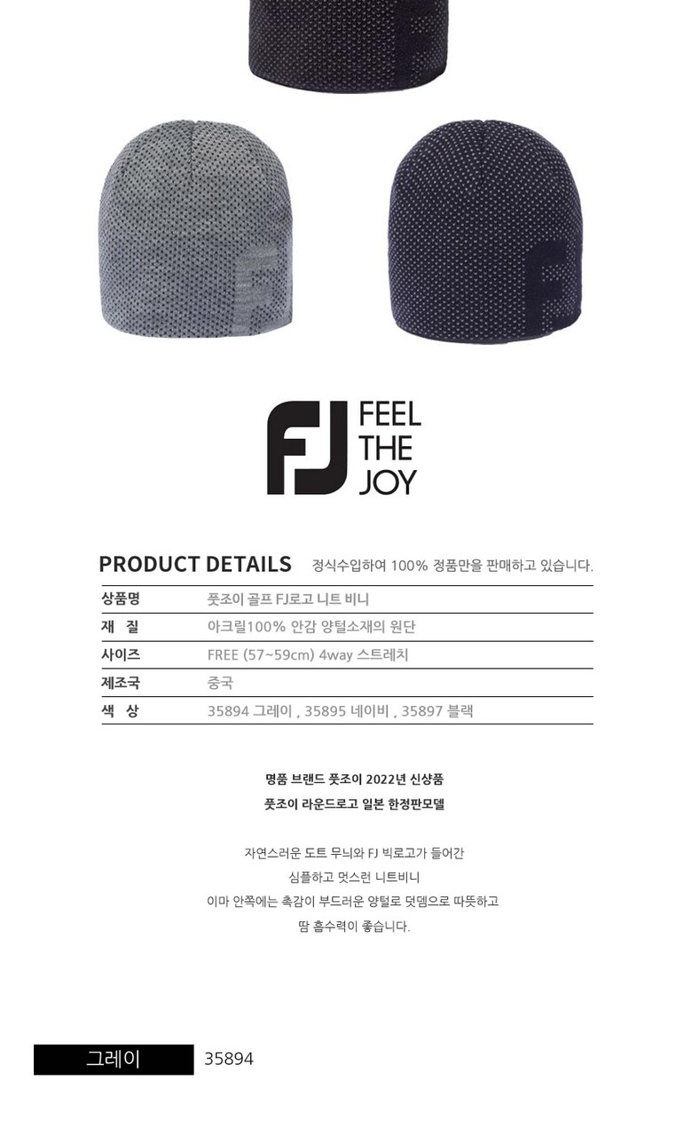 풋조이 JPN 남성 FJ 로고 골프 니트 비니 FJ3589