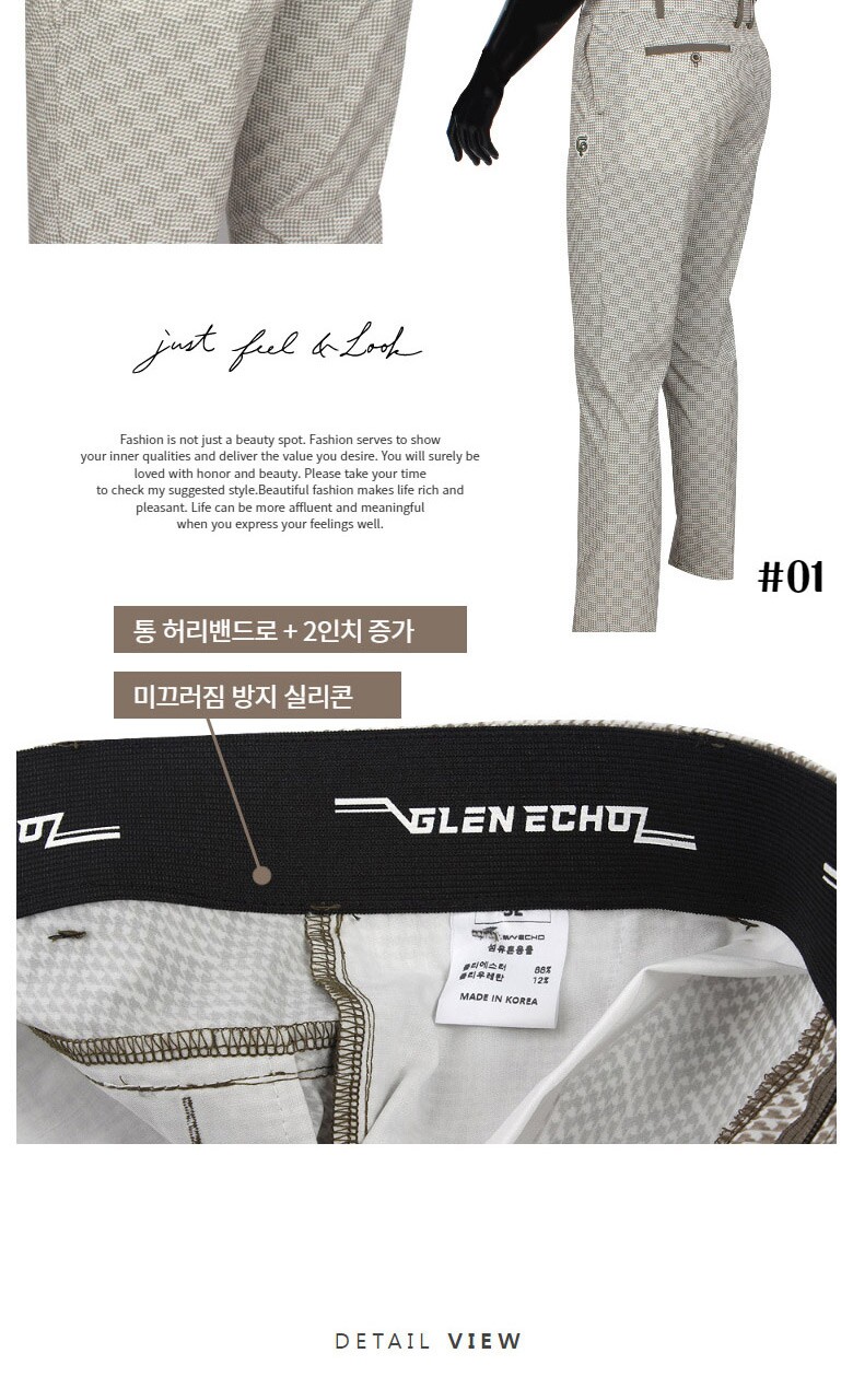 그렌에코 남성 스판 밴드 체크 골프바지 GES22802HCBK
