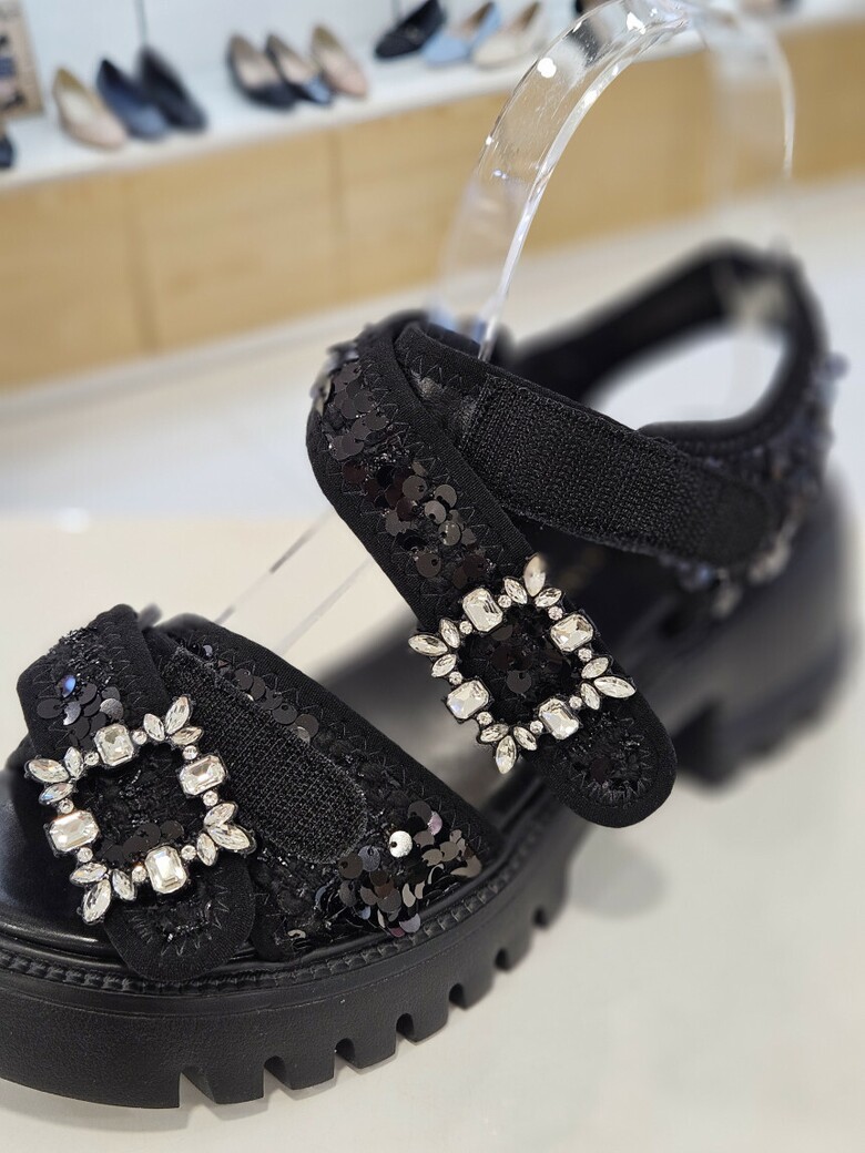 ▶트위드 소재에 보석벨트 장식사용으로 고급스러운 샌들
