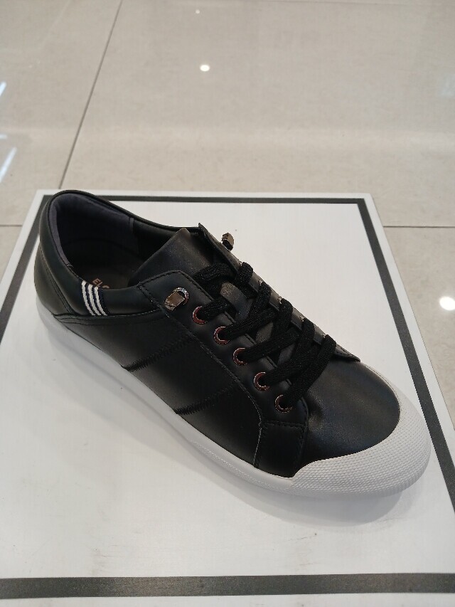 굽높이 약2cm의 높이에 천연소가죽소재를 특수공법으로 가공처리하여 제작된 여성 쿠셔닝 스니커즈입니다