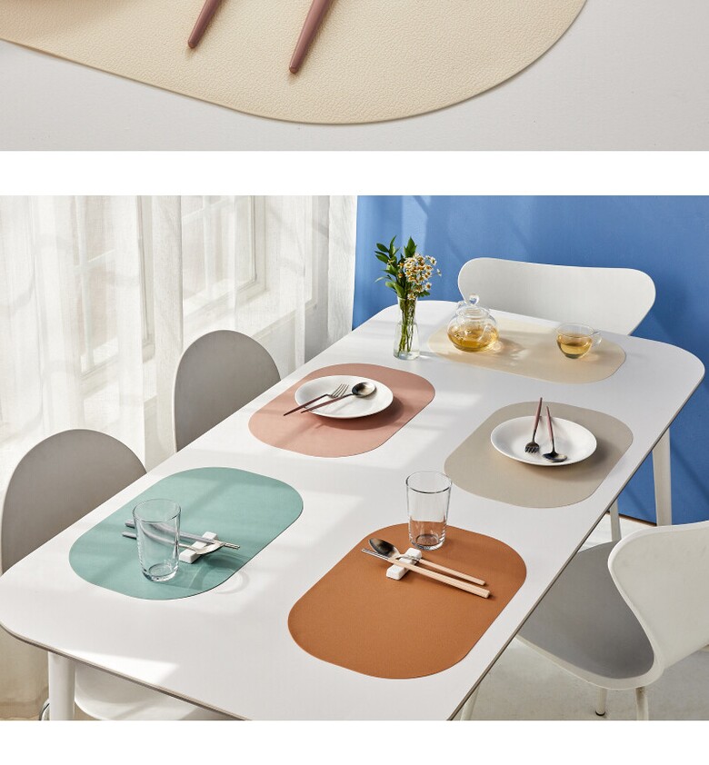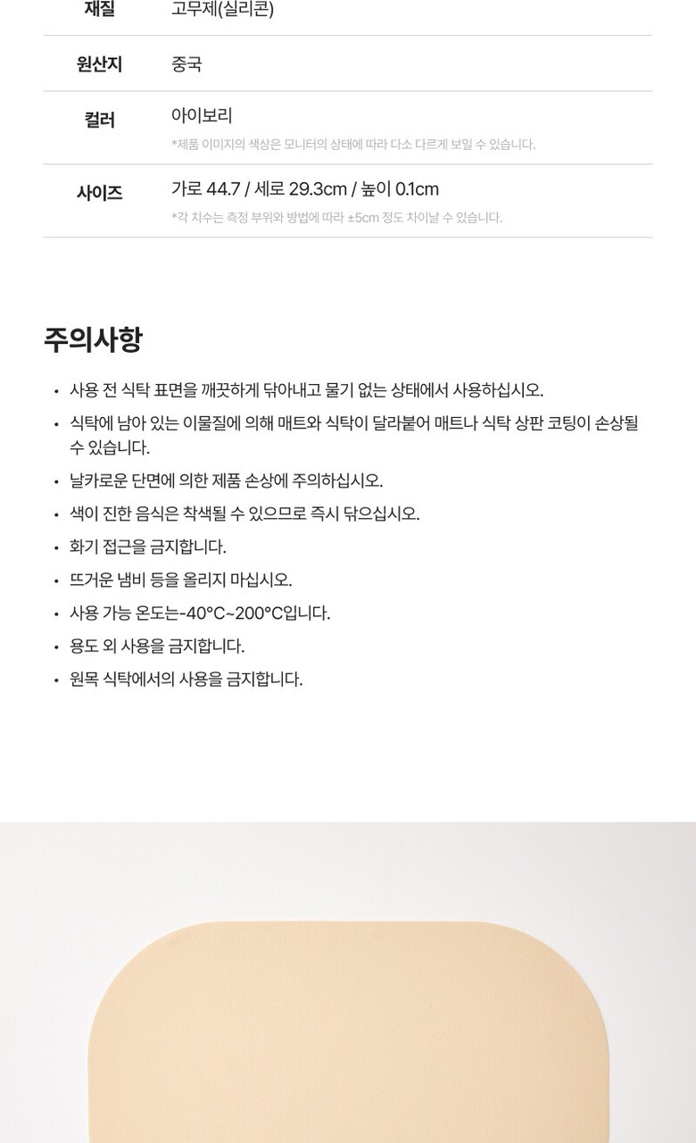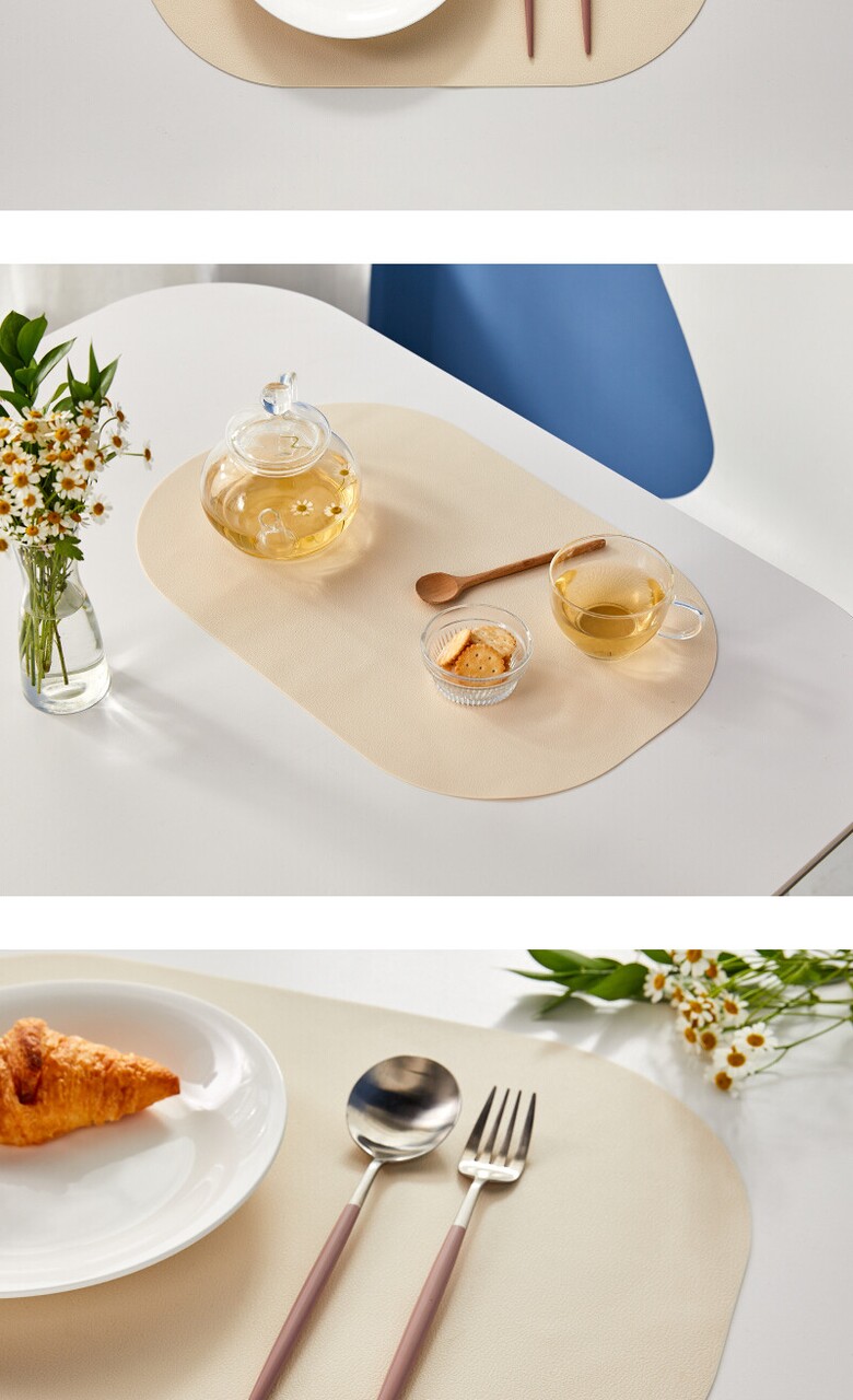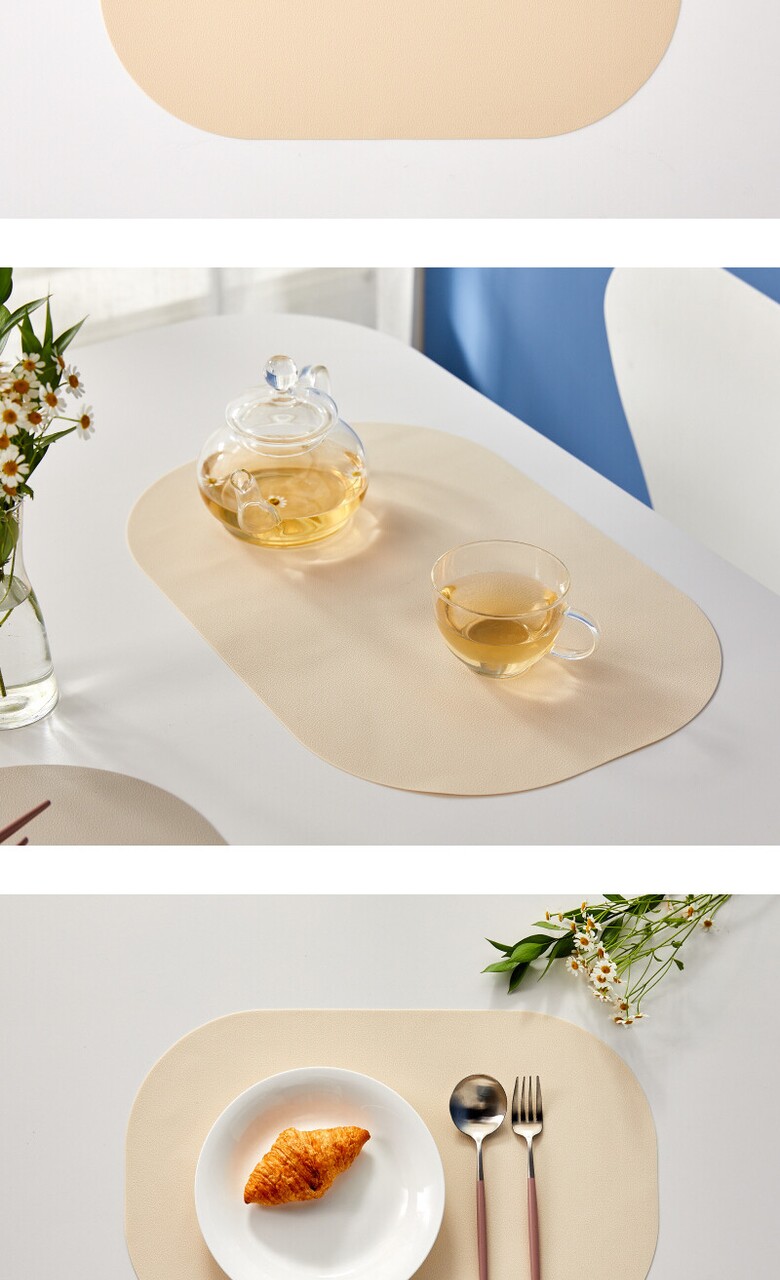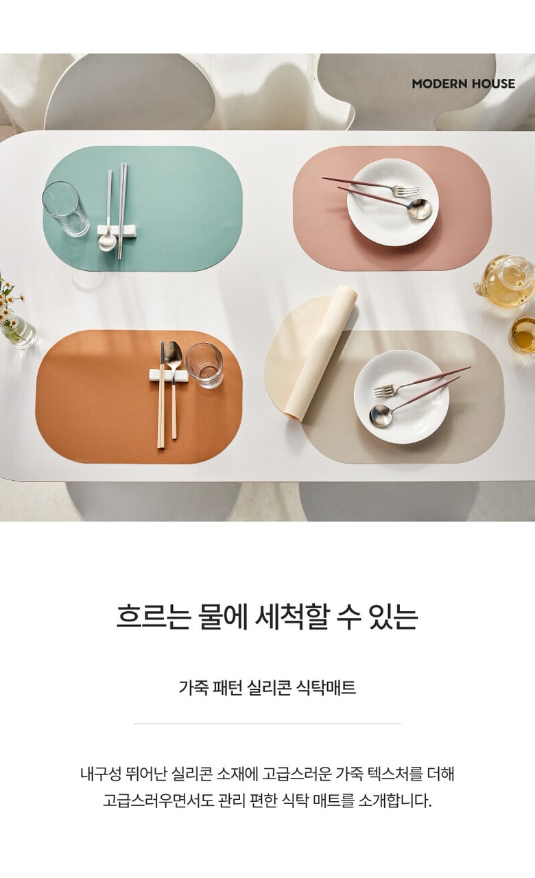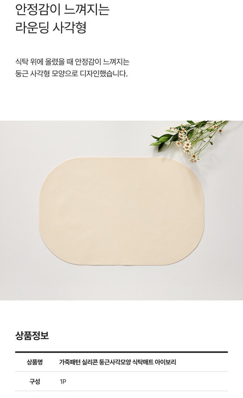 모던하우스 가죽패턴 실리콘 둥근사각모양 식탁매트 아이보리 PL0324006