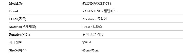 발렌티노 5Y2J0N96 MET CS4 (J0N96 MET CS4) 가라바니 V로고 남성 목걸이