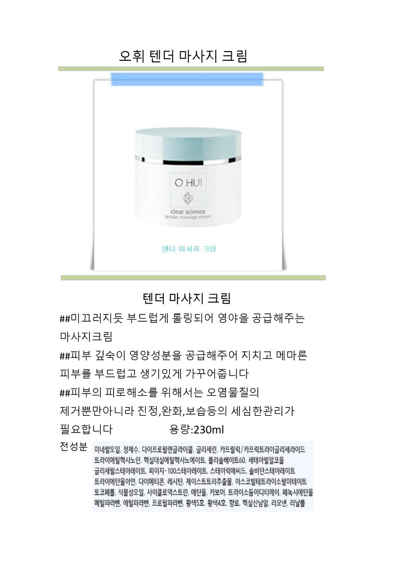 LG 오휘 클리어 사이언스 텐더 마사지 크림230ML