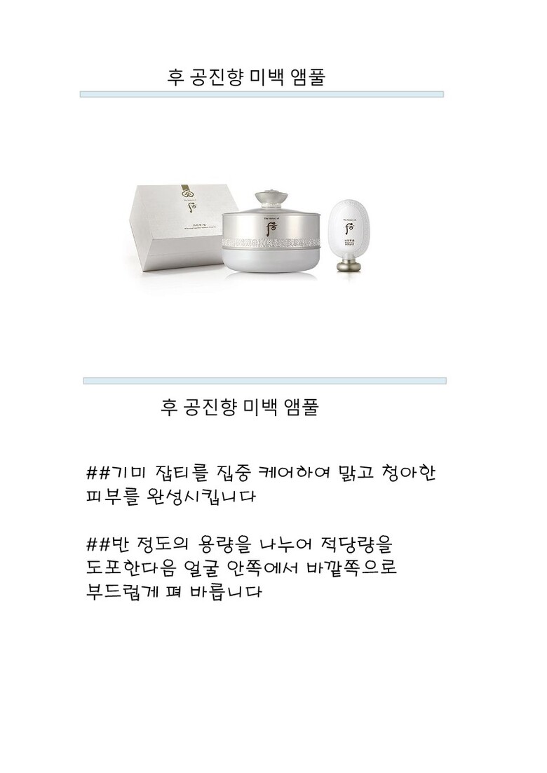 | 4. 사용방법 | 적당량을 취해 피부결에 따라 부드럽게 발라 줍니다. |