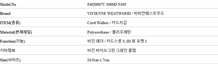 비비안웨스트우드 지갑 54020007U S000D N403 비건 바이오그린 그레인 플랩 여성카드지갑 당일발송