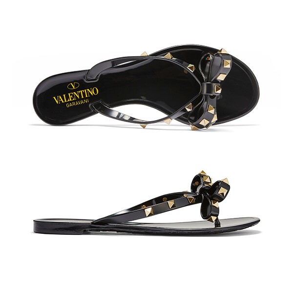 발렌티노 5W2S0552 PVS 0NO (S0552 PVS 0NO) 락스터드 리본 통 플립플랍 여성 슬리퍼