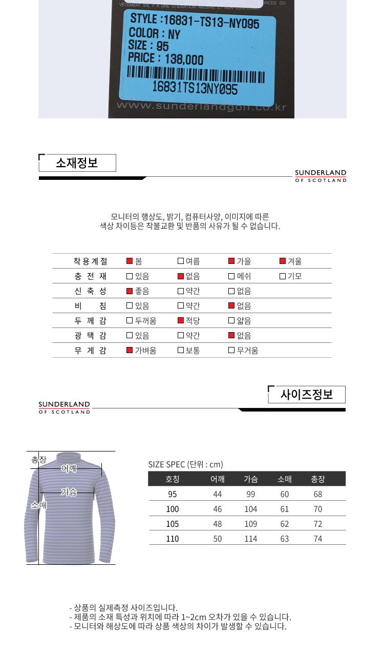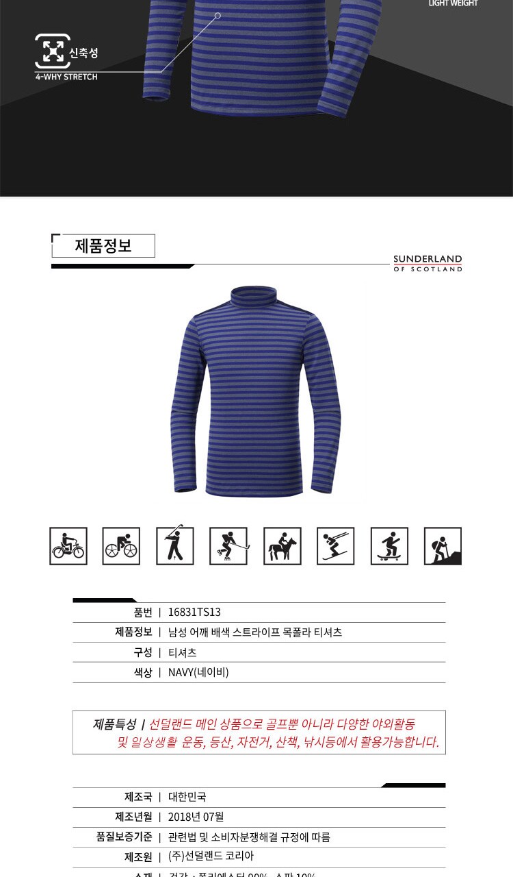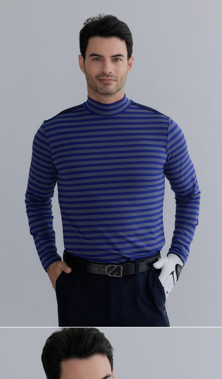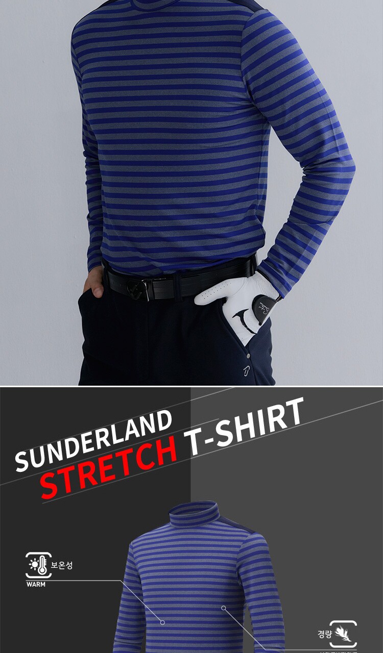 선덜랜드 남성 스판 스트라이프 목폴라 긴팔티셔츠 - 16831TS13