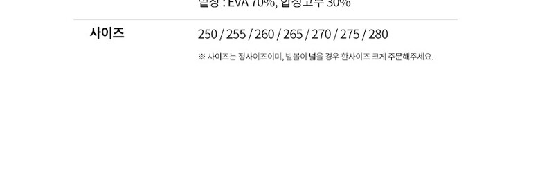 1. 제품 소재 (운동화인 경우에는 겉감, 안감을 구분하여 표시) 겉감:PU70%,폴리에스테르30%,안감:폴리에스터100%,밑창:EVA70%합성고무30%