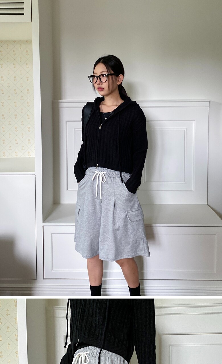 네쥬 여성 가을 편한 밴딩 카고 포켓 캐주얼 5부 버뮤다 팬츠