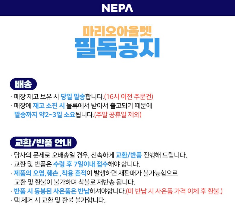 상품불량에 의한 반품, A/S, 품질보증 및 피해보상 등에 관한 사항은 소비자 분쟁해결기준(공정거래위원회 고시) 구매자가 미성년자인 경우에는 상품 구입시 법정대리인이 동의하지 아니하면 미성년자 본인 또는 법정대리인이 구매취소 할 수 있습니다. |