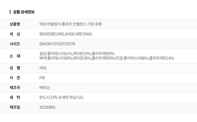 | 2. 색상 | BEIGE(BE)/MELANGE GREY(MG) |