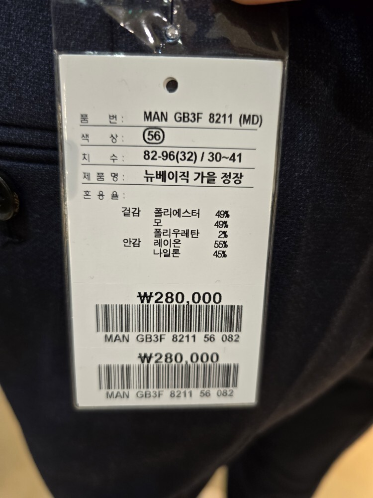겉감 : 폴리에스터49% 모49% 폴리우레탄2%