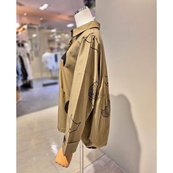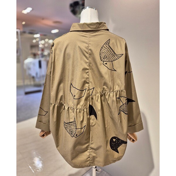여유많은 루즈핏, 신축성 없는 얇은 소재, 소매롤업 고정, 언발기장, 등라인 셔링