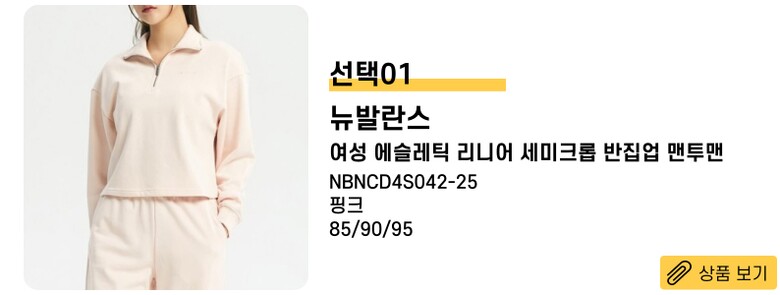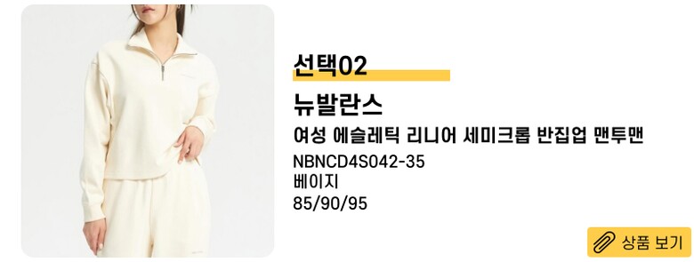 뉴발란스 여성 에슬레틱 리니어 세미크롭 반집업 맨투맨 NBNCD4S042 2종 택1