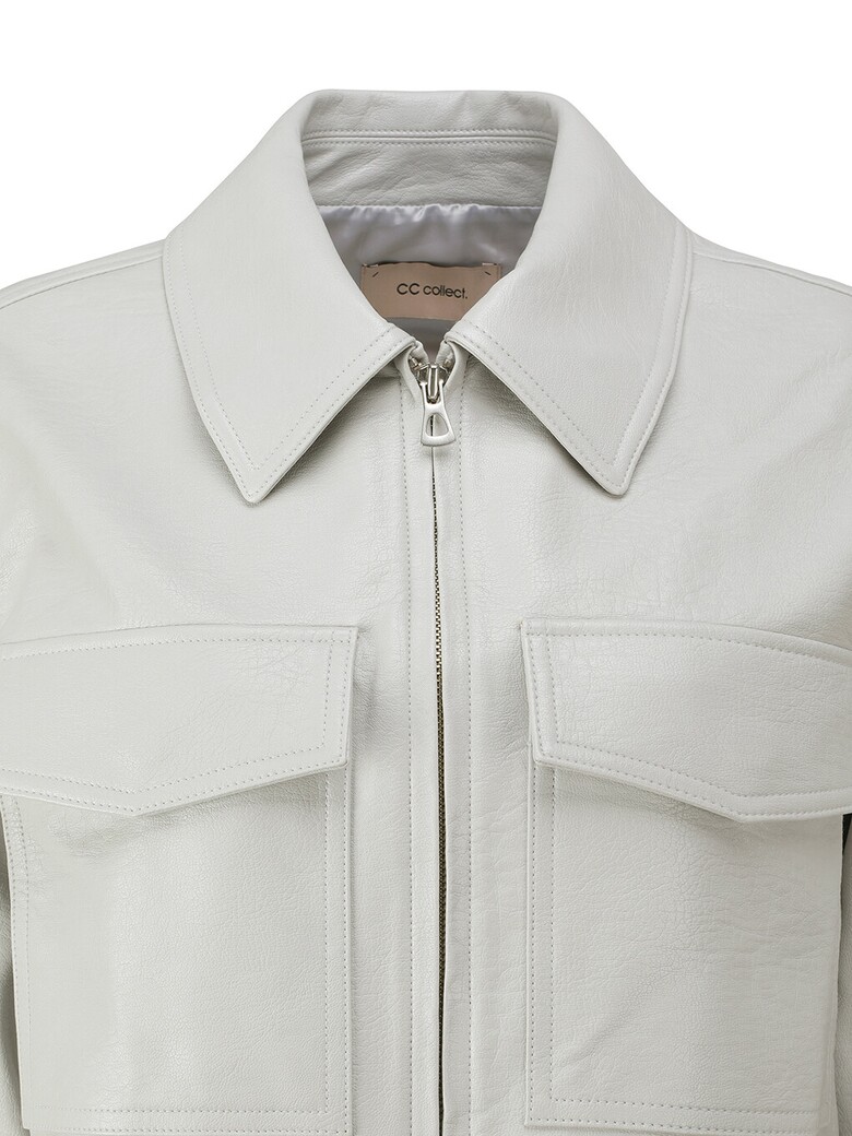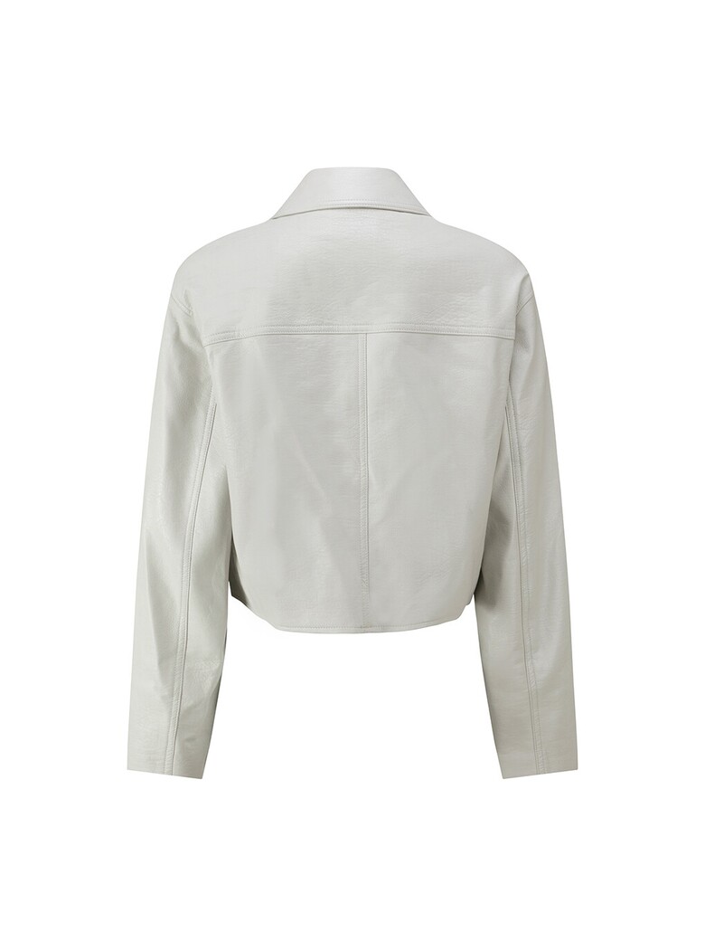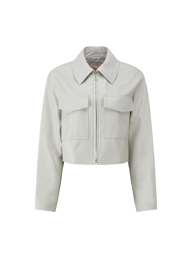 - 스탠카라의 크롭기장 페이크레더 자켓으로