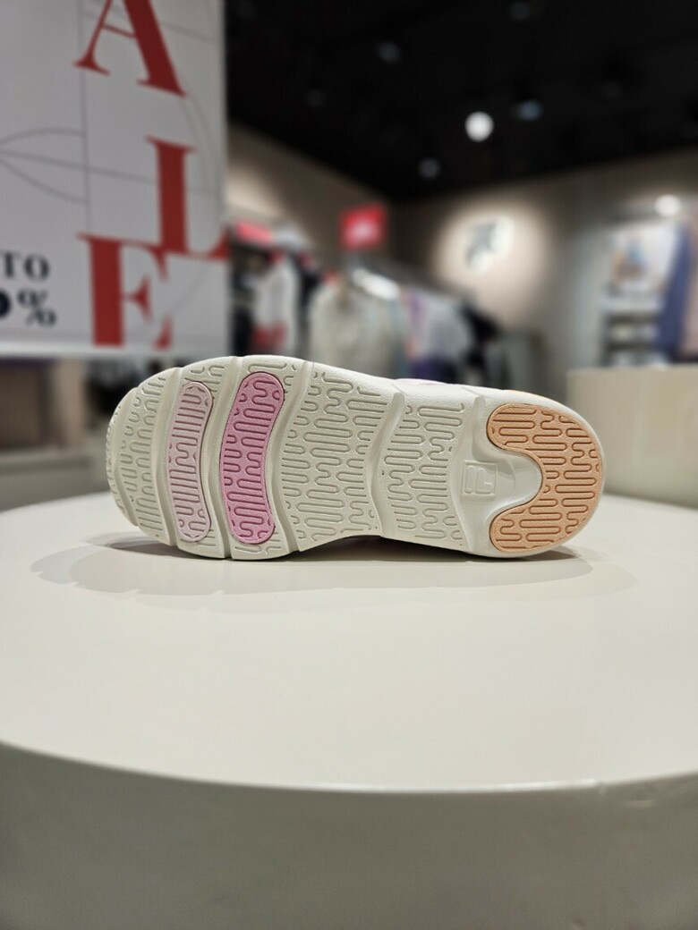 - 폭신한 갑피 소재는 편안함을 제공하고, 아웃솔의 단단한 사출 구조는 높은 안정감을 제공