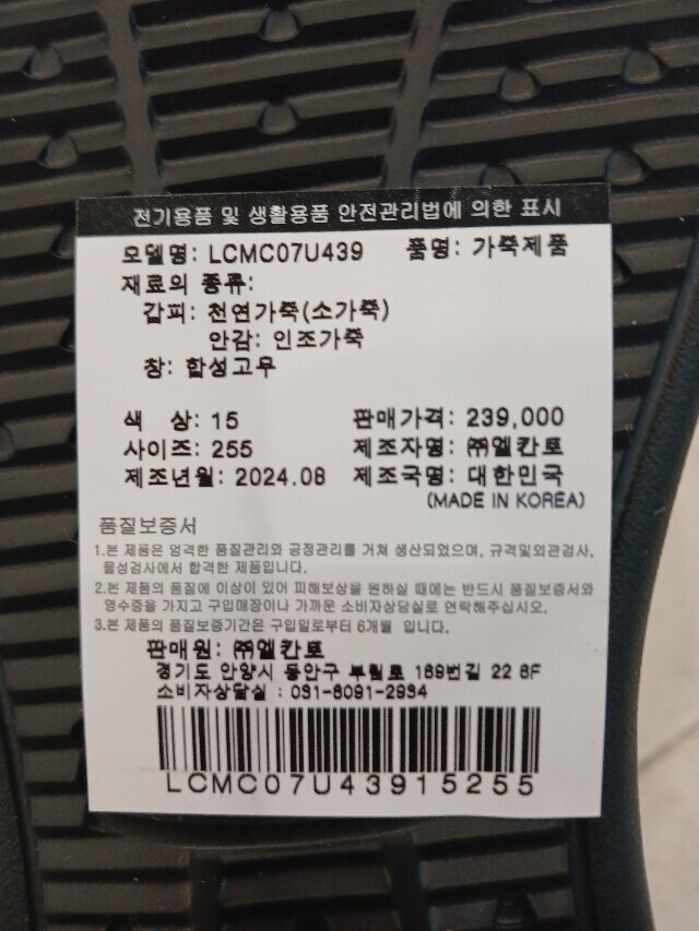 | 7. 품질보증기준 | 관련법 및 소비자분쟁해결기준에 따름 |