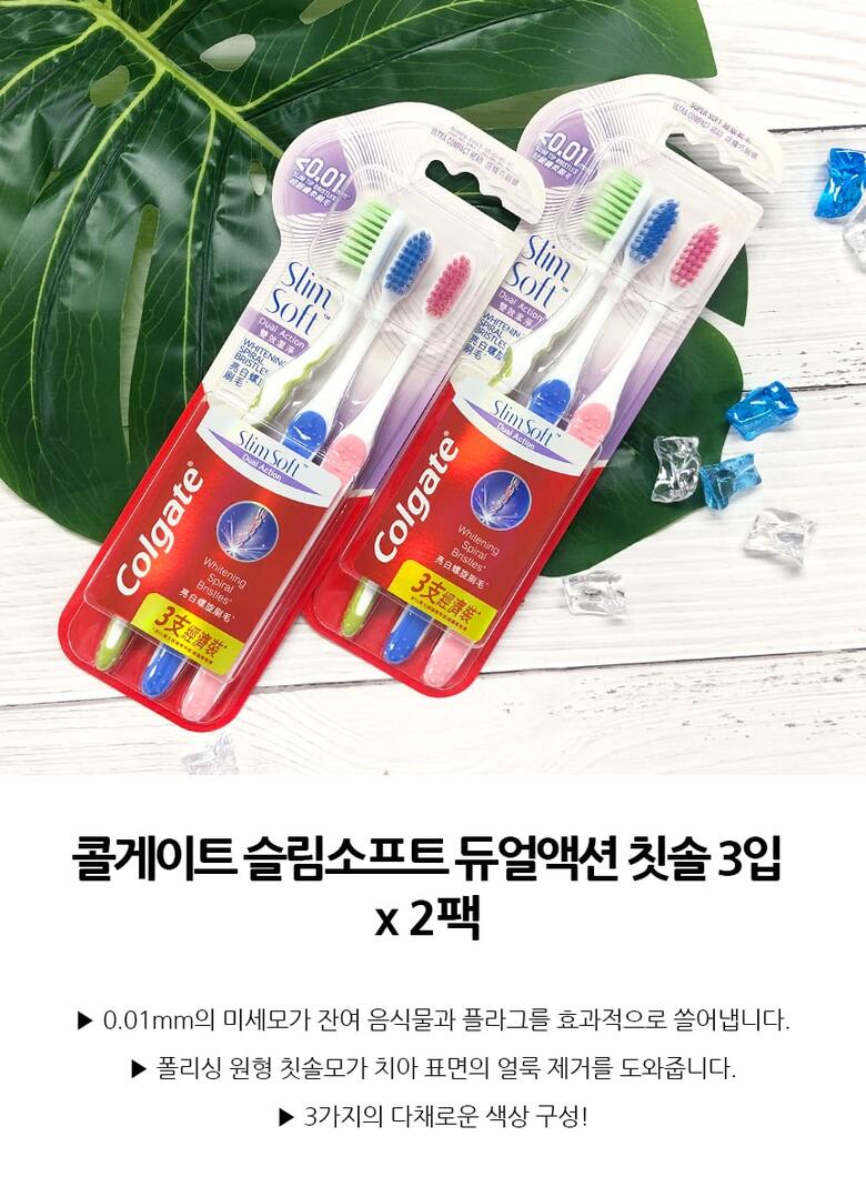 콜게이트칫솔 슬림소프트 듀얼액션 3입 2팩 미세모
