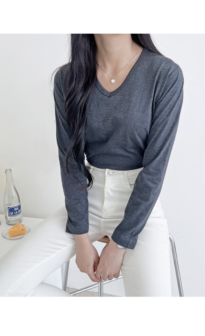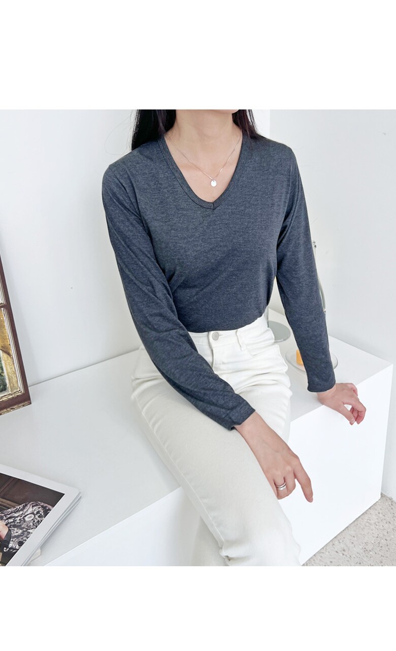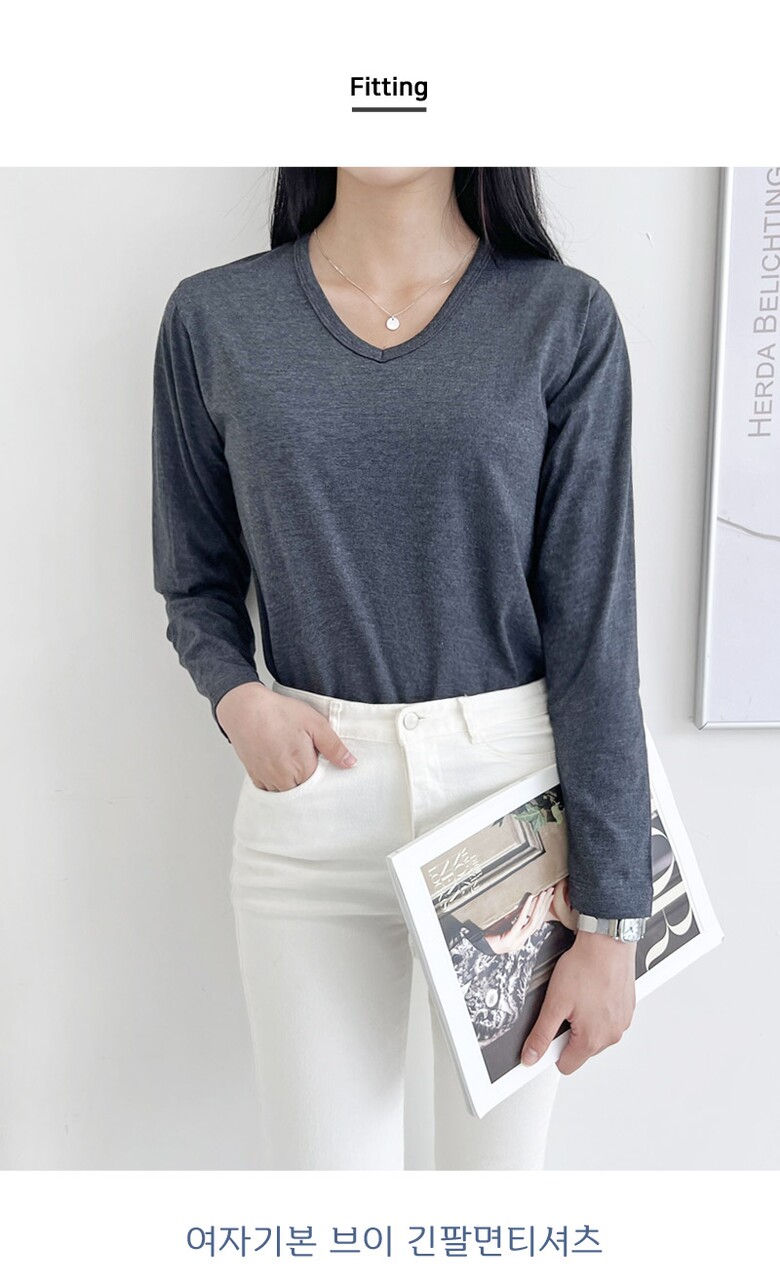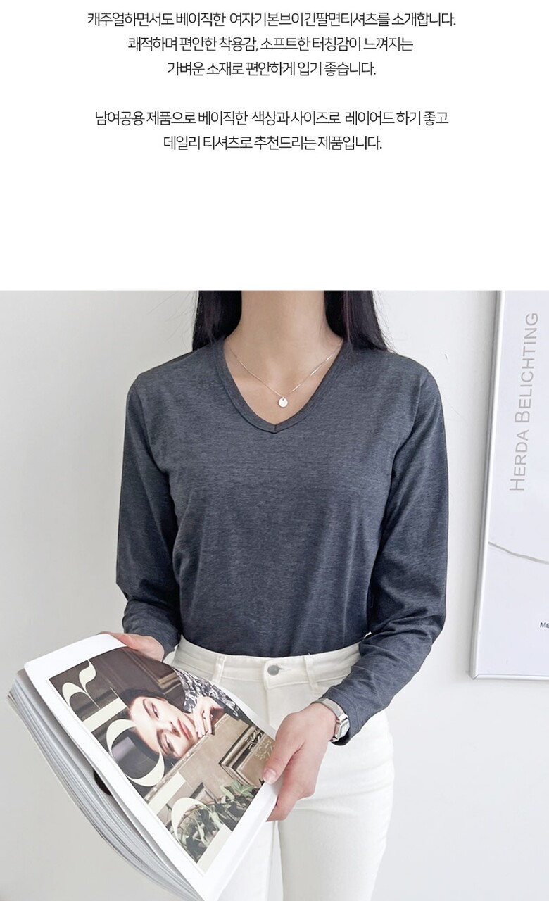 [1+1] 여자 기본 브이 긴팔 면 티셔츠 빅사이즈 여성