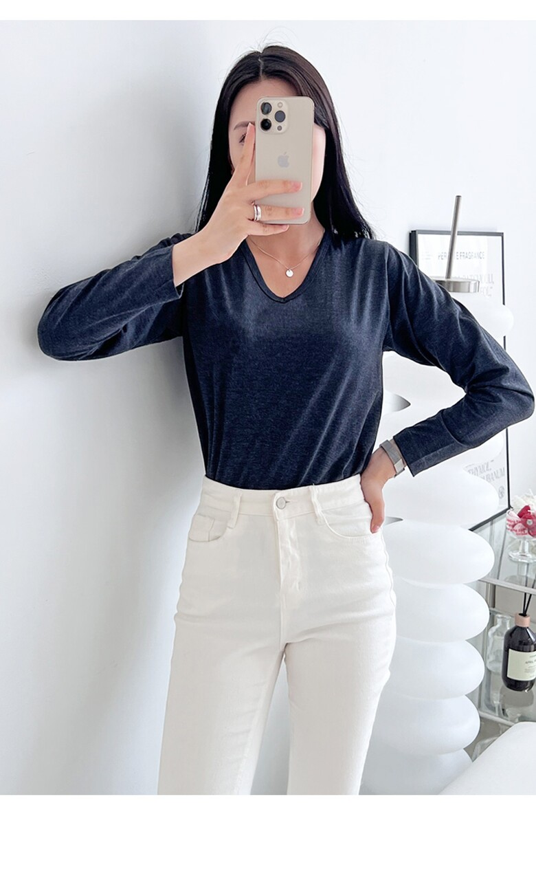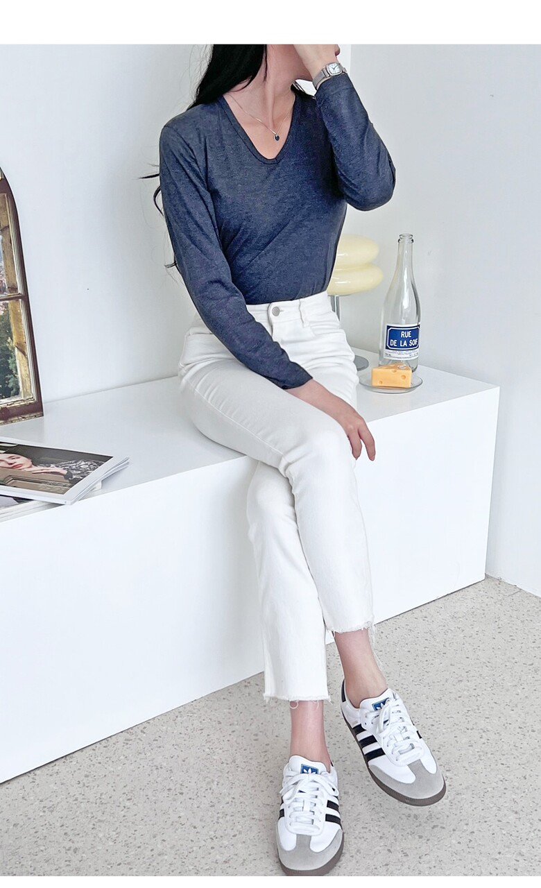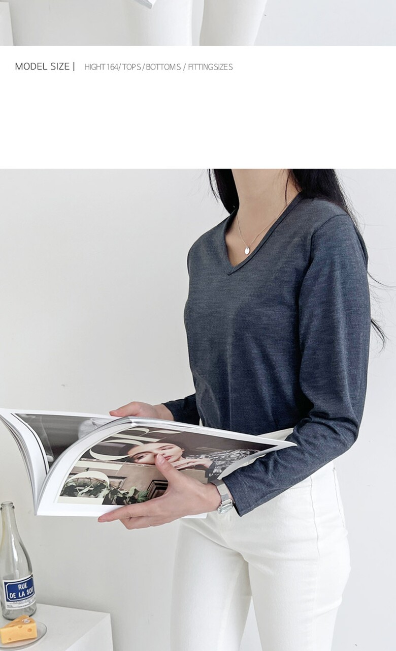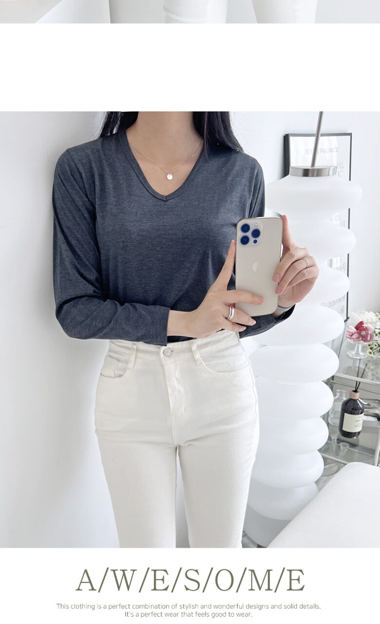 [1+1] 여자 기본 브이 긴팔 면 티셔츠 빅사이즈 여성