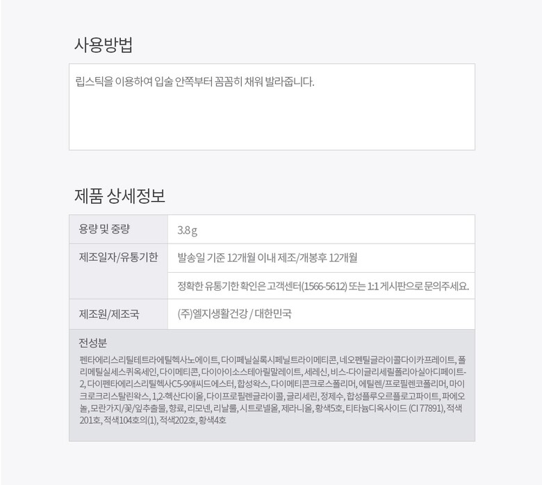 | 4. 사용방법 | 립스틱을 이용하여 입술 안쪽부터 꼼꼼히 채워 발라줍니다. |