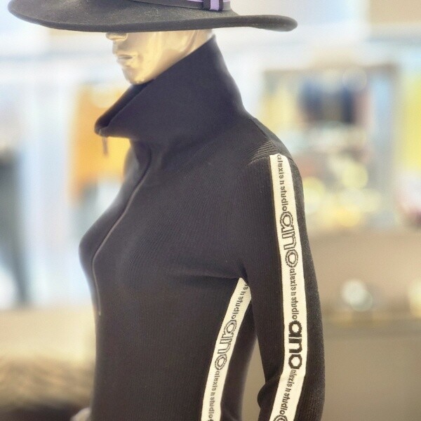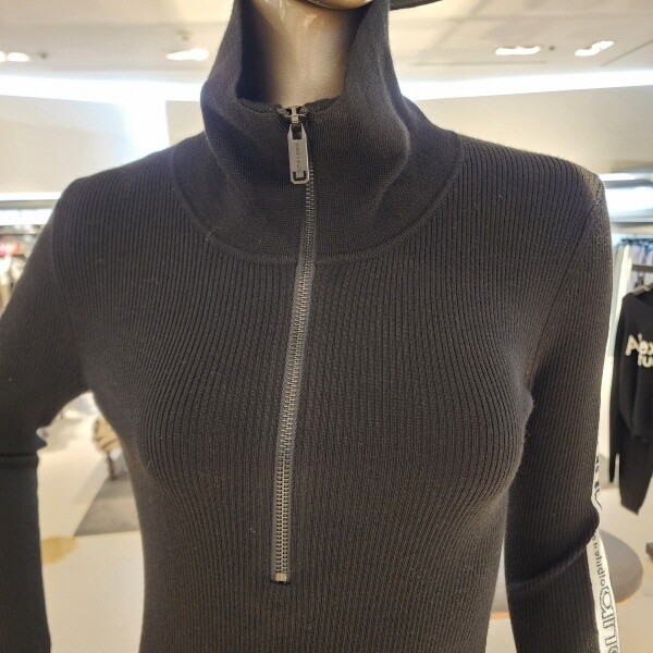 AD95NSKA5591_레터링 라인배색 반집업 니트원피스
