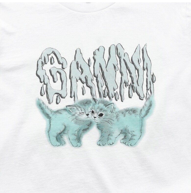 GANNI T3917 151 캣 로고 프린트 여성 여성 반팔티