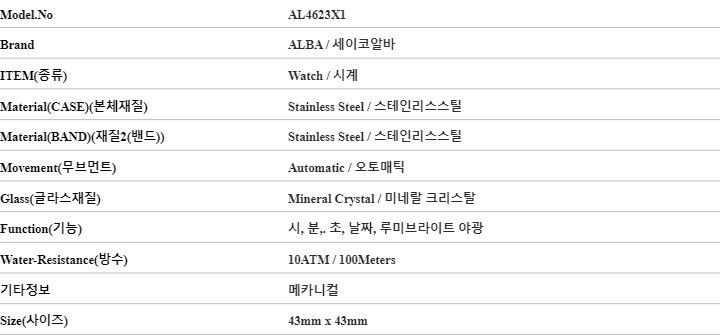 세이코알바 AL4623X1 메카니컬 오토매틱 남성 메탈시계