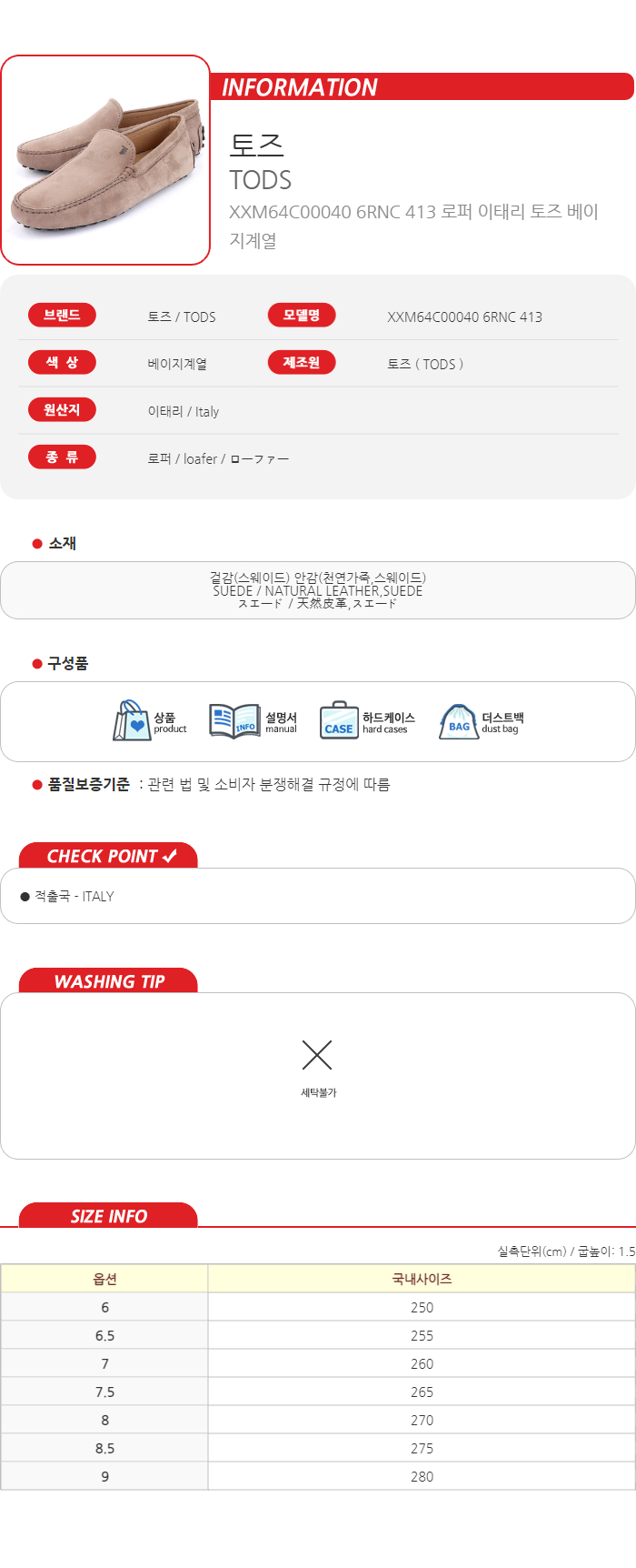 | 1. 제품 소재 (운동화인 경우에는 겉감, 안감을 구분하여 표시) | 상세페이지 참조 |