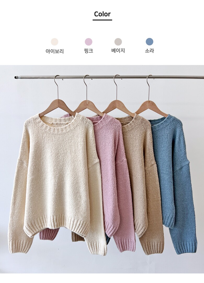 블레오 여성 겨울 루즈핏 기본 라운드 무지 데일리 니트